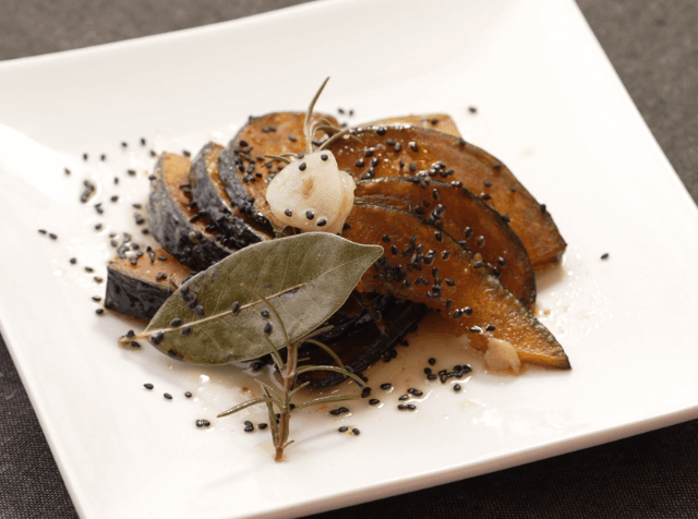 サイドの「アグロドルチェ」は甘酸っぱいという意味。ローズマリー香る甘酸っぱいマリネ液にじっくり揚げたかぼちゃを浸した、みんなが大好きになる一皿です。