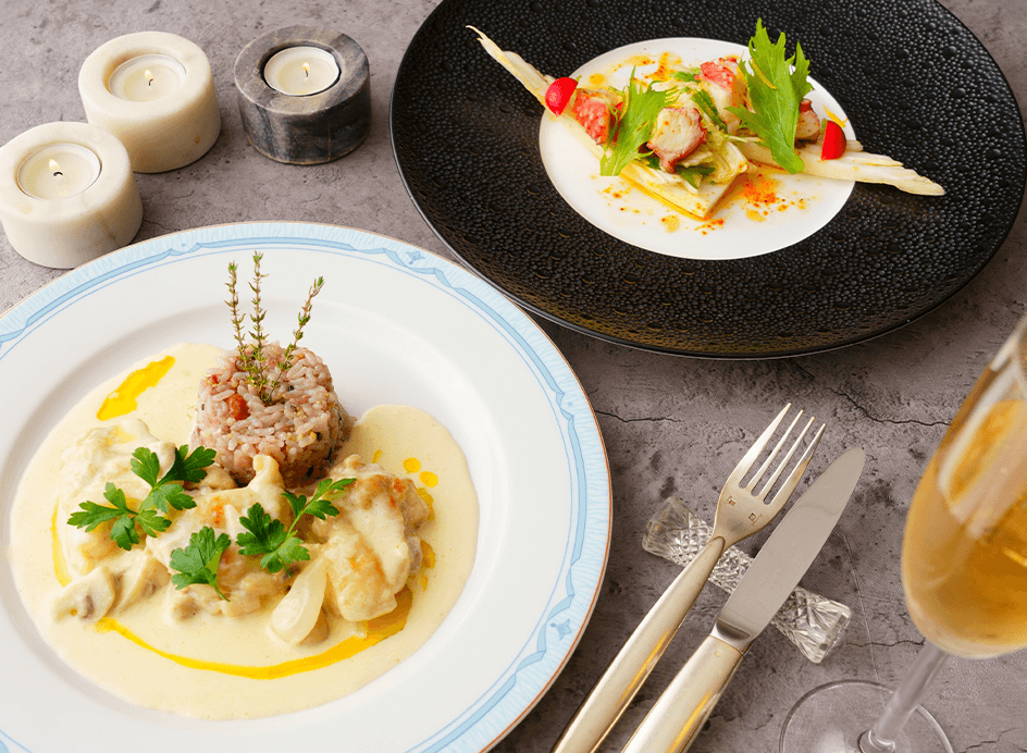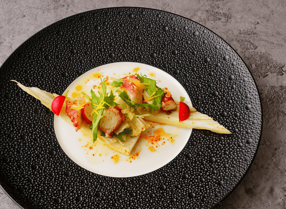サイドディッシュはナベノ-イズムらしく和の食材を取り入れながらフランス料理を感じるサラダ。洗練された盛り付けは見た目も華やかに、まるでレストランのような食卓を演出いただけます。