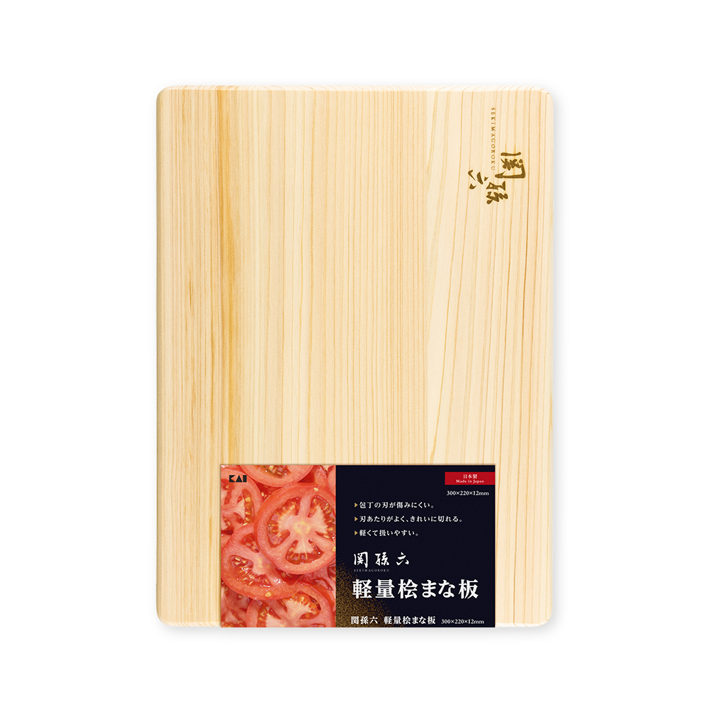 関孫六 軽量ひのきまな板 300mm×220mm×12mm ・包丁の刃が傷みにくい ・刃あたりがよく、きれいに切れる ・軽くて扱いやすい