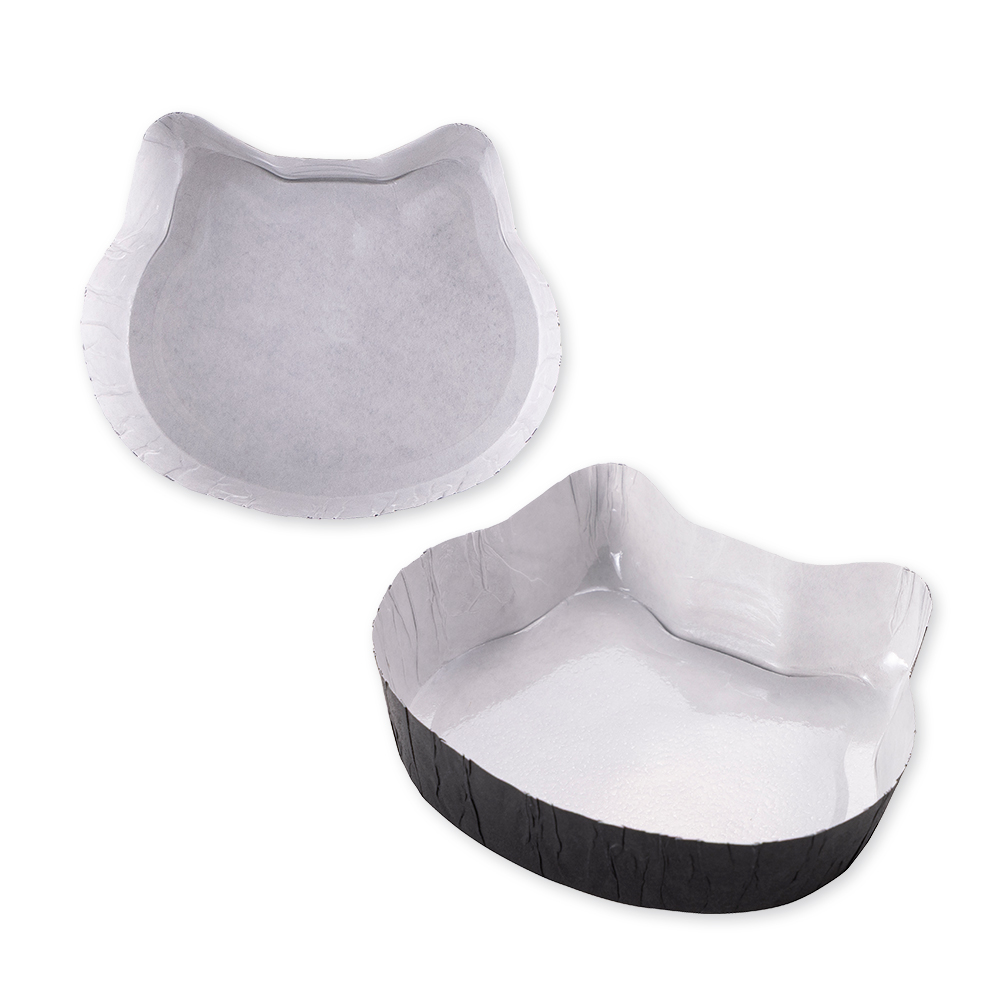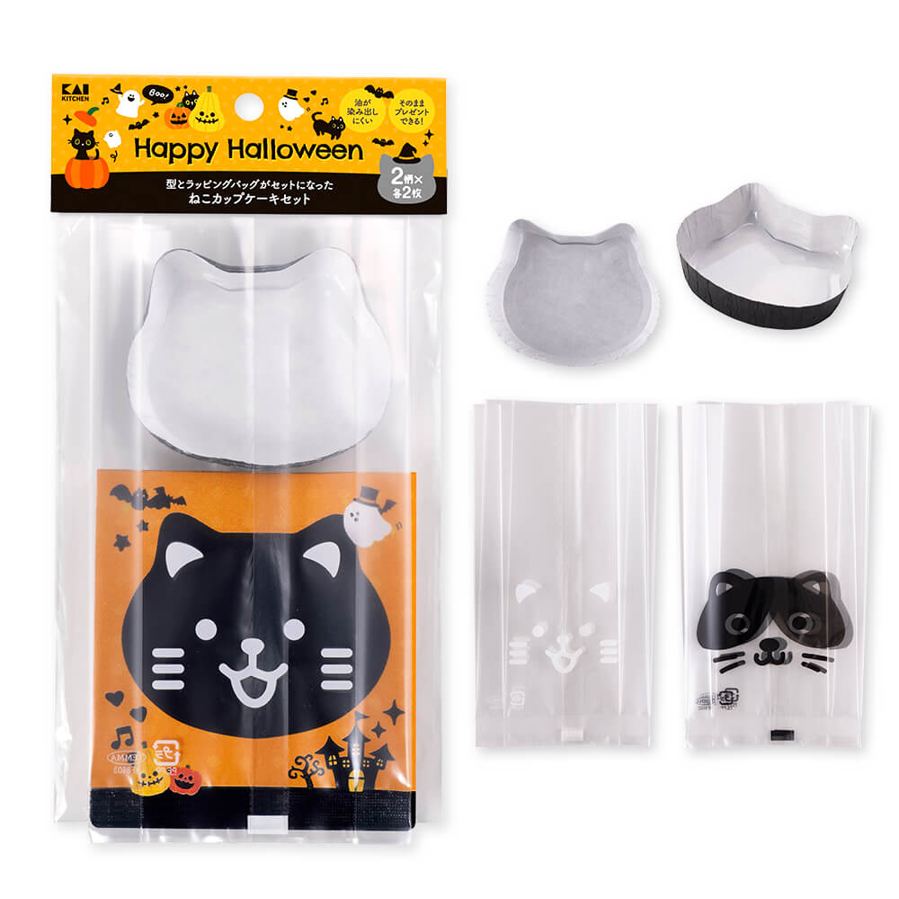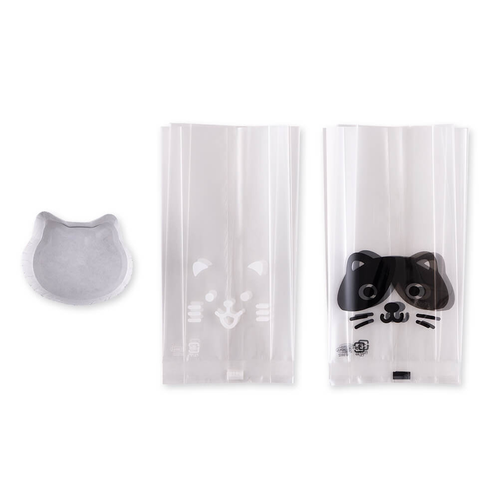 ・かわいいねこ型のケーキカップと、顔のデザイン入りラッピングバッグのセット。