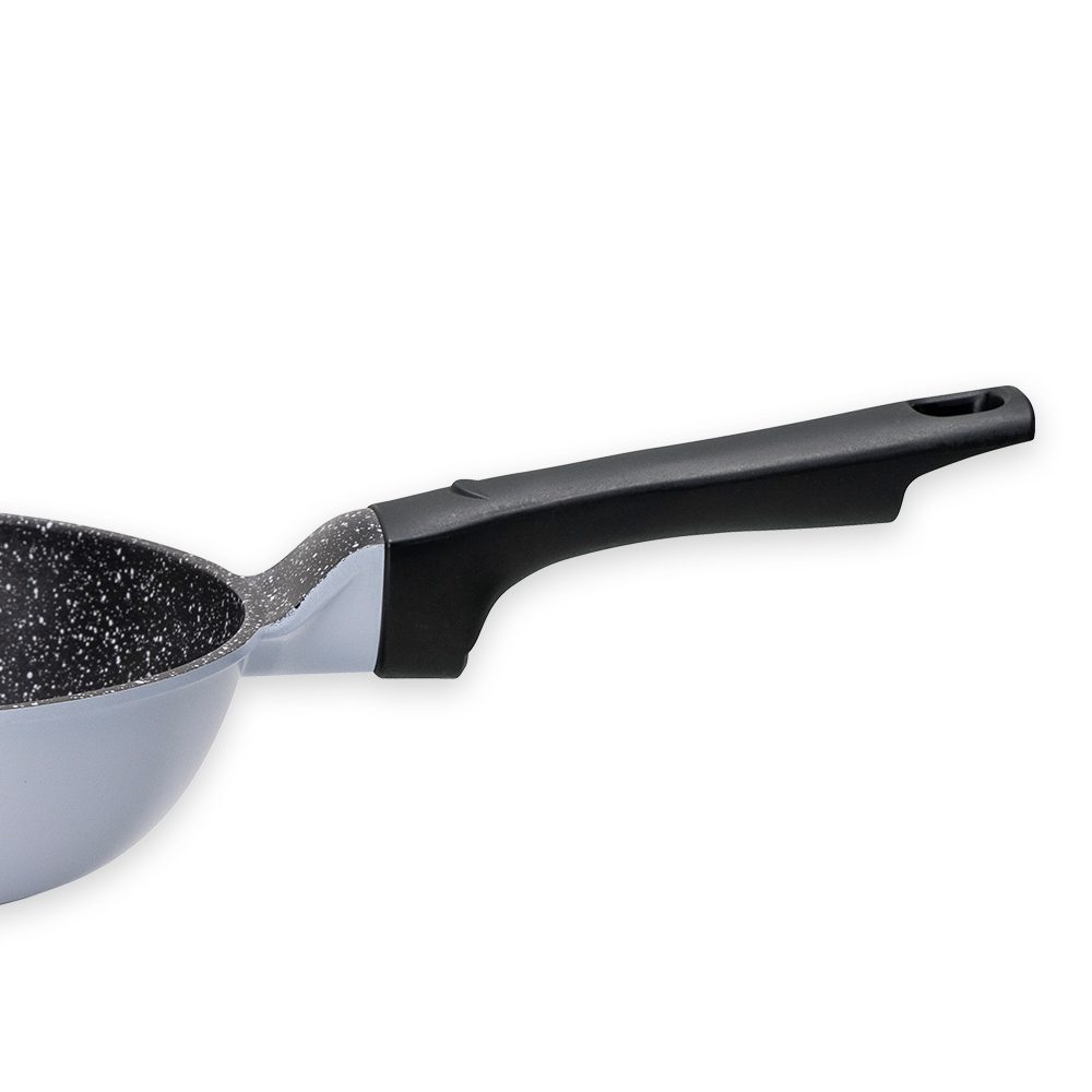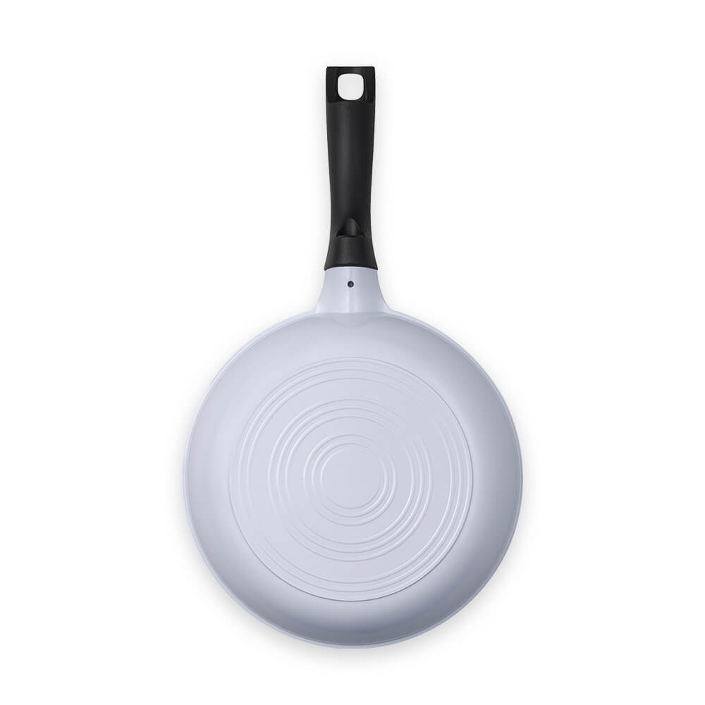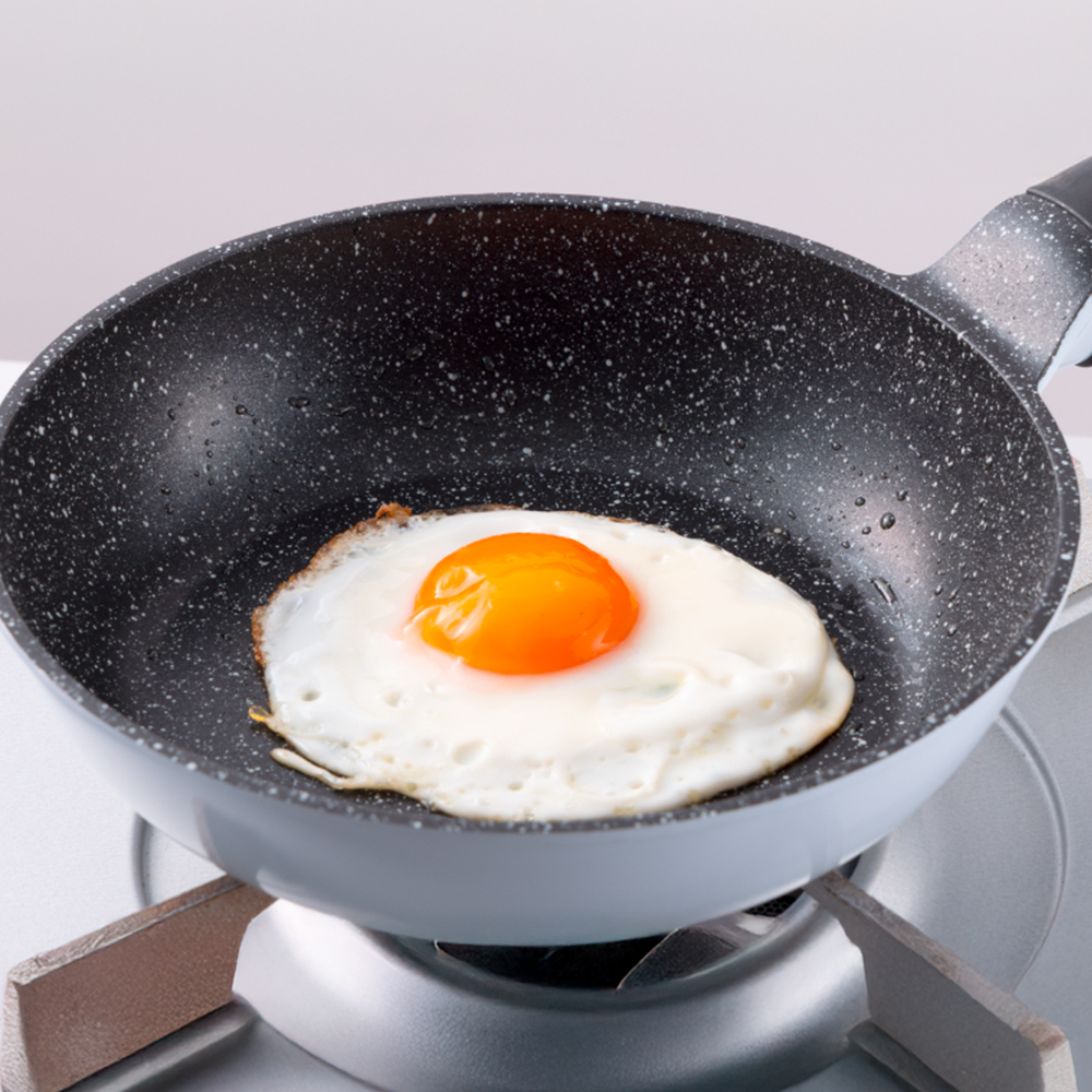 ・フライパンの内面には、食材の滑りが良く、こびりつきづらいマーブルコートを使用。料理のこびりつきや傷からフライパンを守ります。