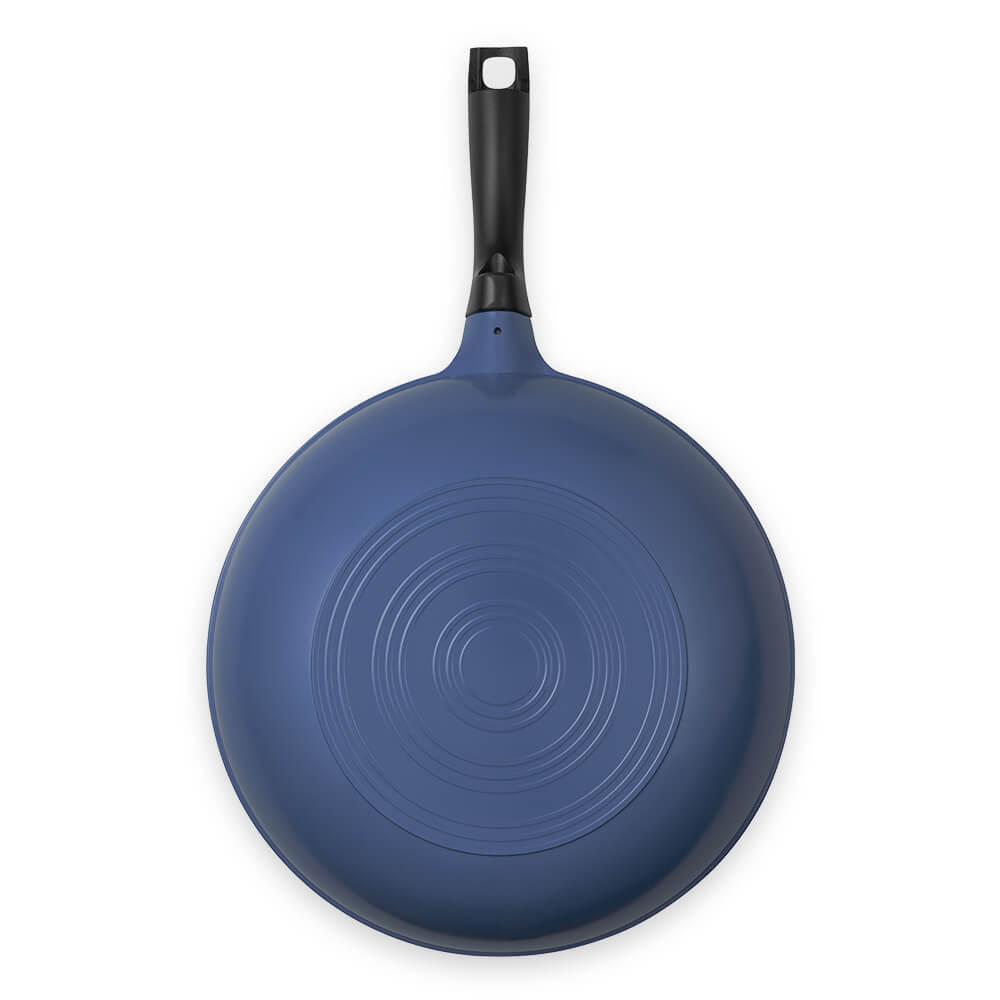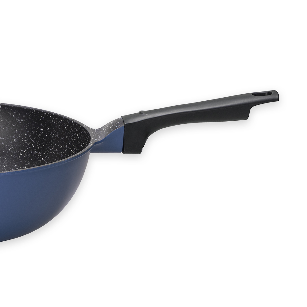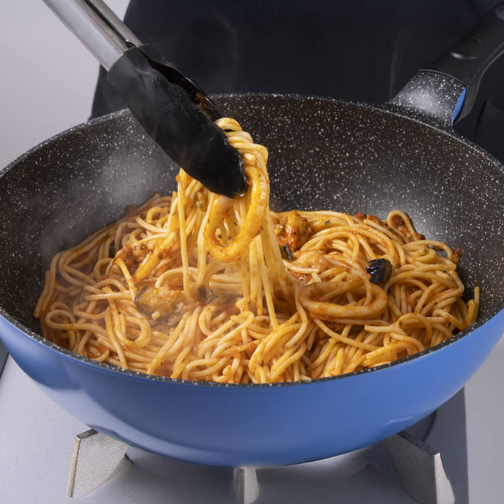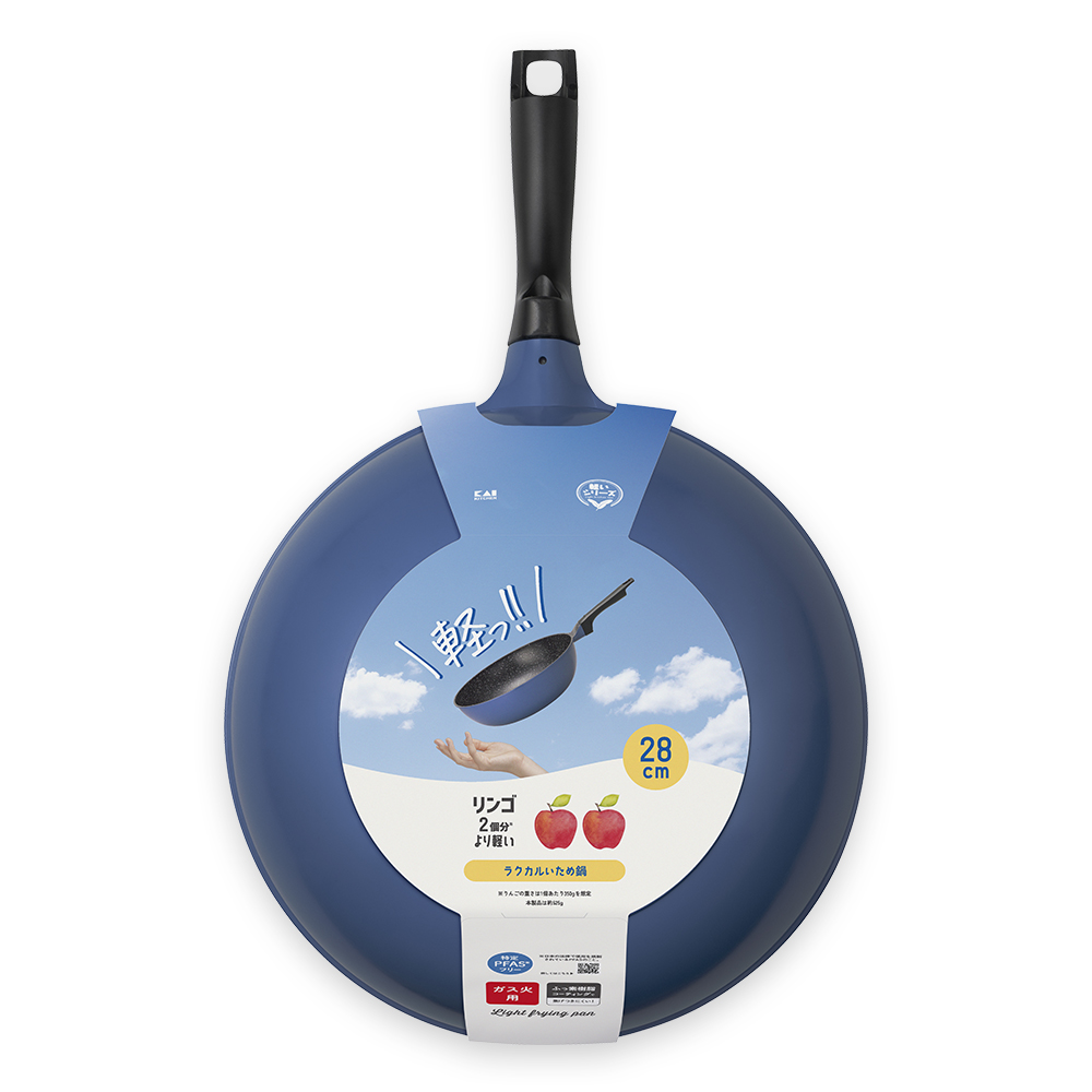 ・フライパンの内面には、食材の滑りが良く、こびりつきづらいマーブルコートを使用。料理のこびりつきや傷からフライパンを守ります。