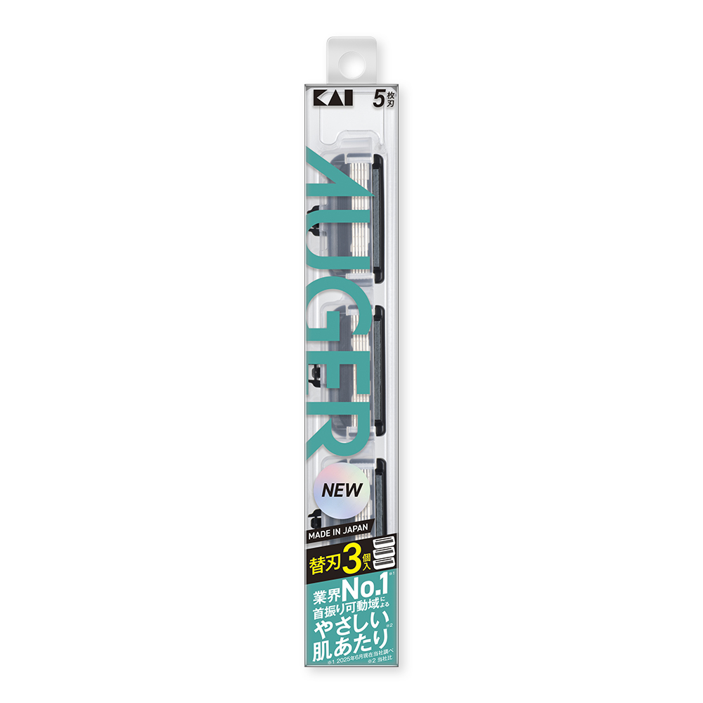 刃物のスペシャリストである貝印が、「身だしなみを整える時間」をより豊かで、より心地よいものへと導くべく誕生したのが、新ブランドAUGERです。乱雑になりがちな洗面台をすっきりと統一するスタイリッシュなブラックのデザインを採用した全9商品のグルーミングアイテムは、カミソリ、ツメキリ、ハサミなど幅広いツールを取り扱う貝印だからこそ実現できた、ハイパフォーマンスでハイクオリティなラインナップです。