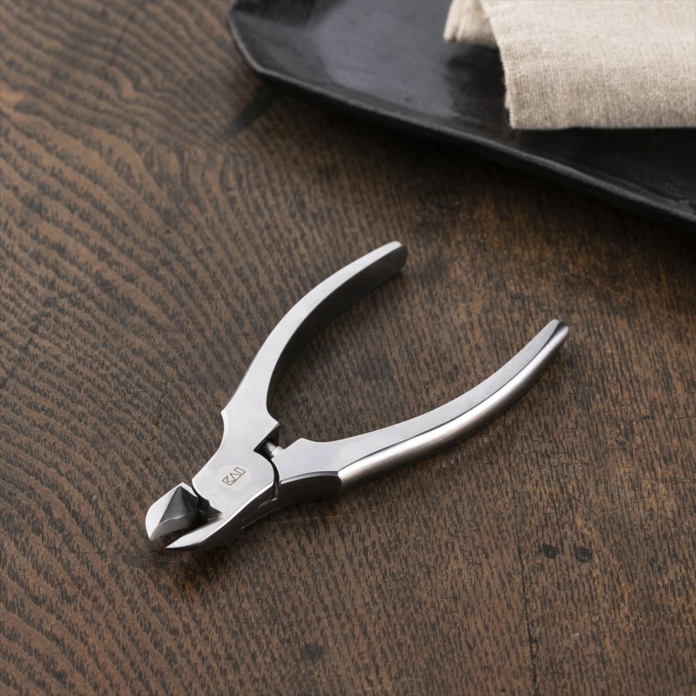 刀匠関孫六の伝統から生まれたツメキリ。コイルスプリングの機構を採用。バネの弾力で弱い力でカットすることができる。手の小さい人が握りやすいサイズで、握った手が滑り落ちない突起を設けたハンドル形状。