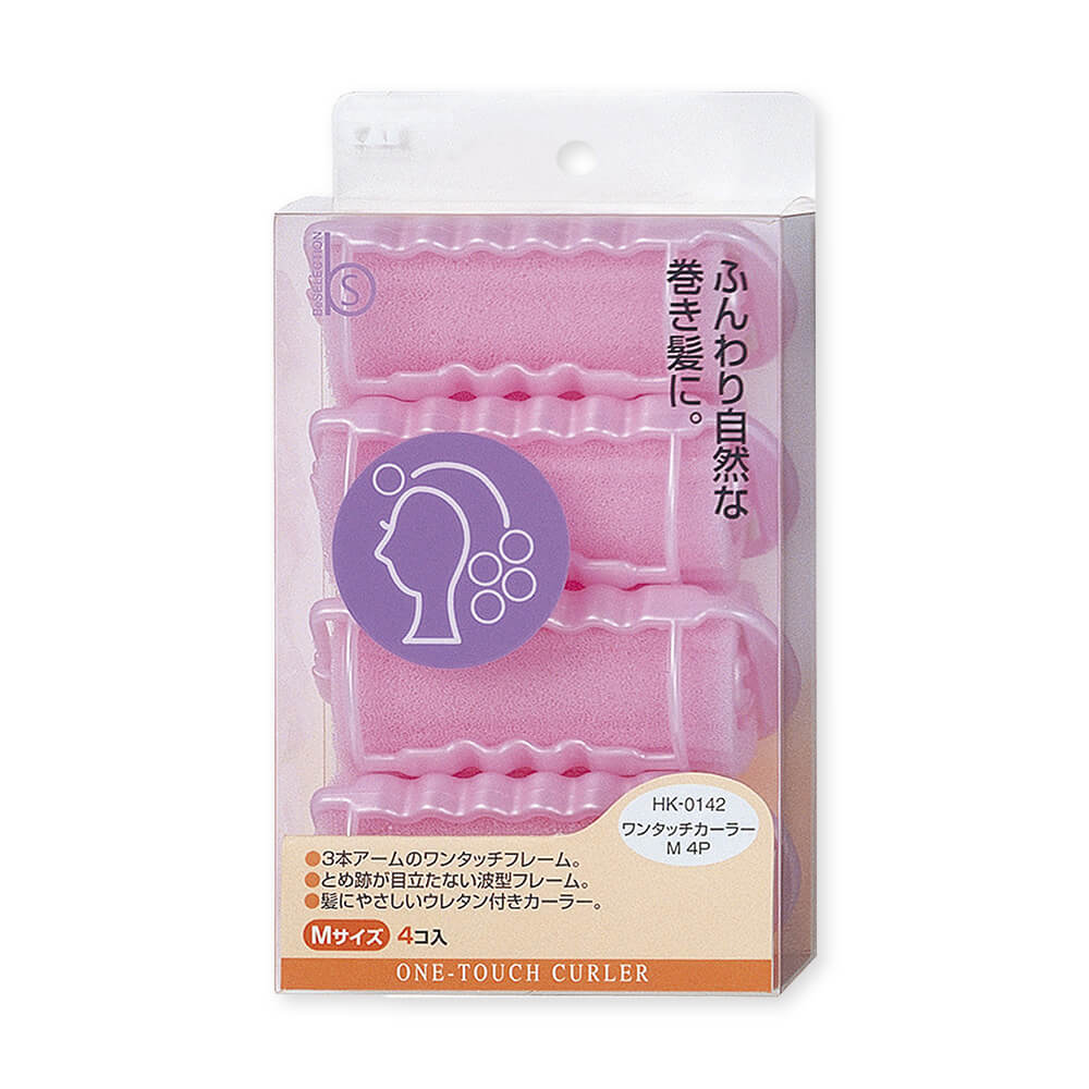 3本アームの回転式フレームで、ピンを使わず簡単に髪を止めることができる、ワンタッチカーラーM(4P)です。[日本製]