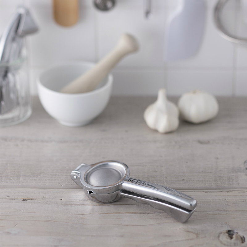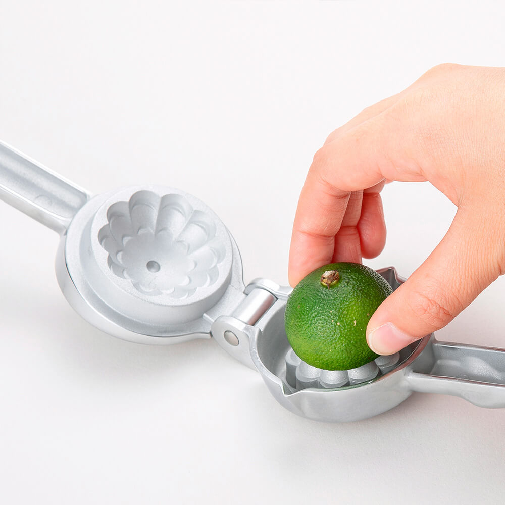 すだち、シークワーサーなどの小さな柑橘類の果汁もたっぷり、無駄なく簡単に絞れます!人間工学をもとに設計したハンドルは手にほどよくフィットし、少ない力で作業ができます。アルミ製の本体は、洗いやすくて衛生的です。注ぎ口が付いたコンパクトサイズなので、卓上に置いてしぼりながらも使えます。