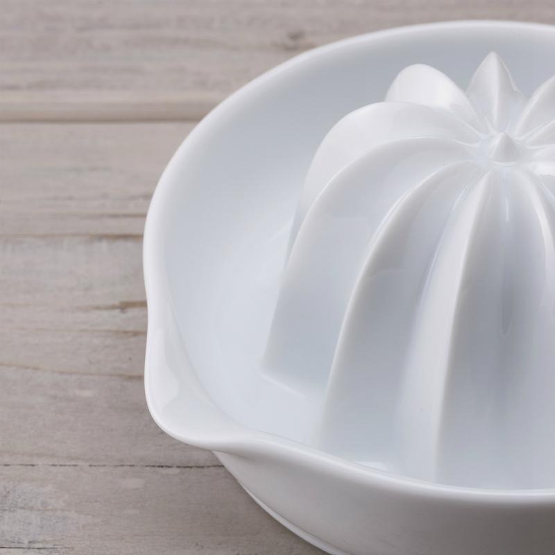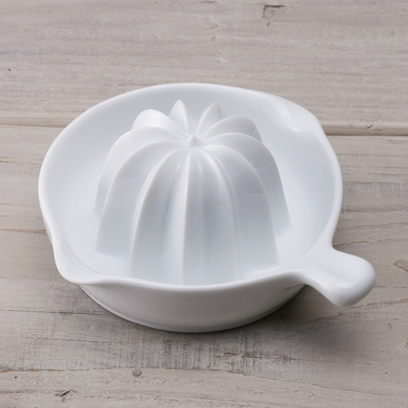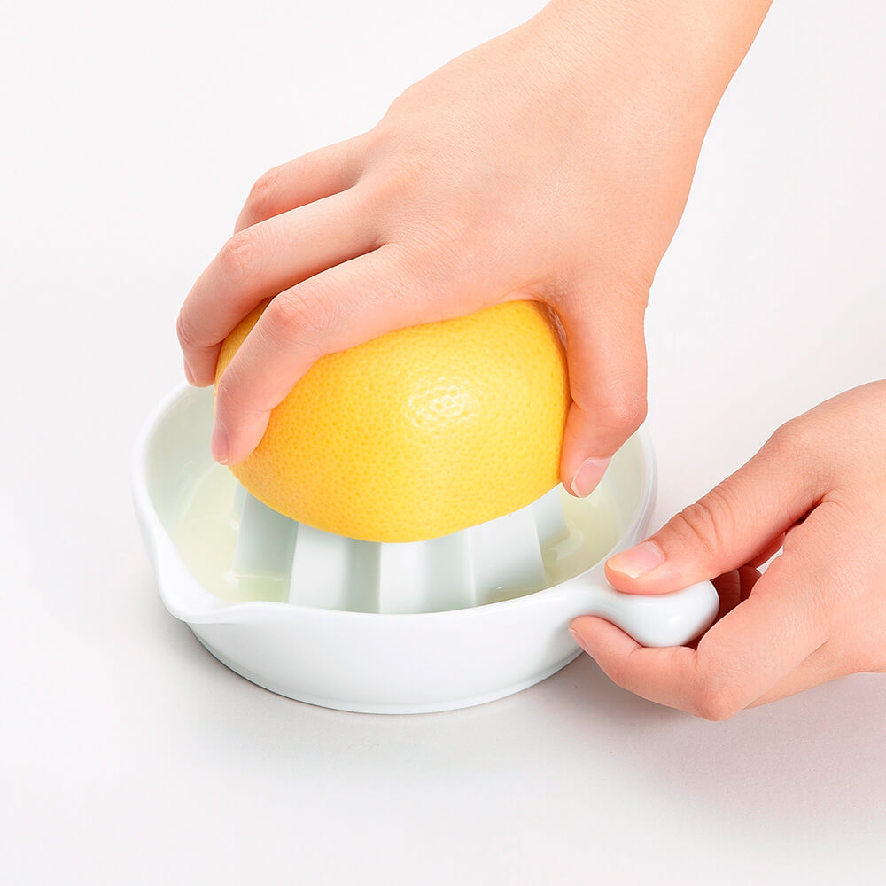 一見、普通の搾り器ですが・・・使ってみると思わずおどろき!!深い目立てが特徴の、新山型フォルムで最後まで残さず絞れます。洗いやすく、匂いや色がつきにくいセラミック製、底部にはシリコンのすべり止めが付いているので、安定感をもって作業を行えます。果汁をたっぷり絞れるよう、受け皿にも深さを持たせました。