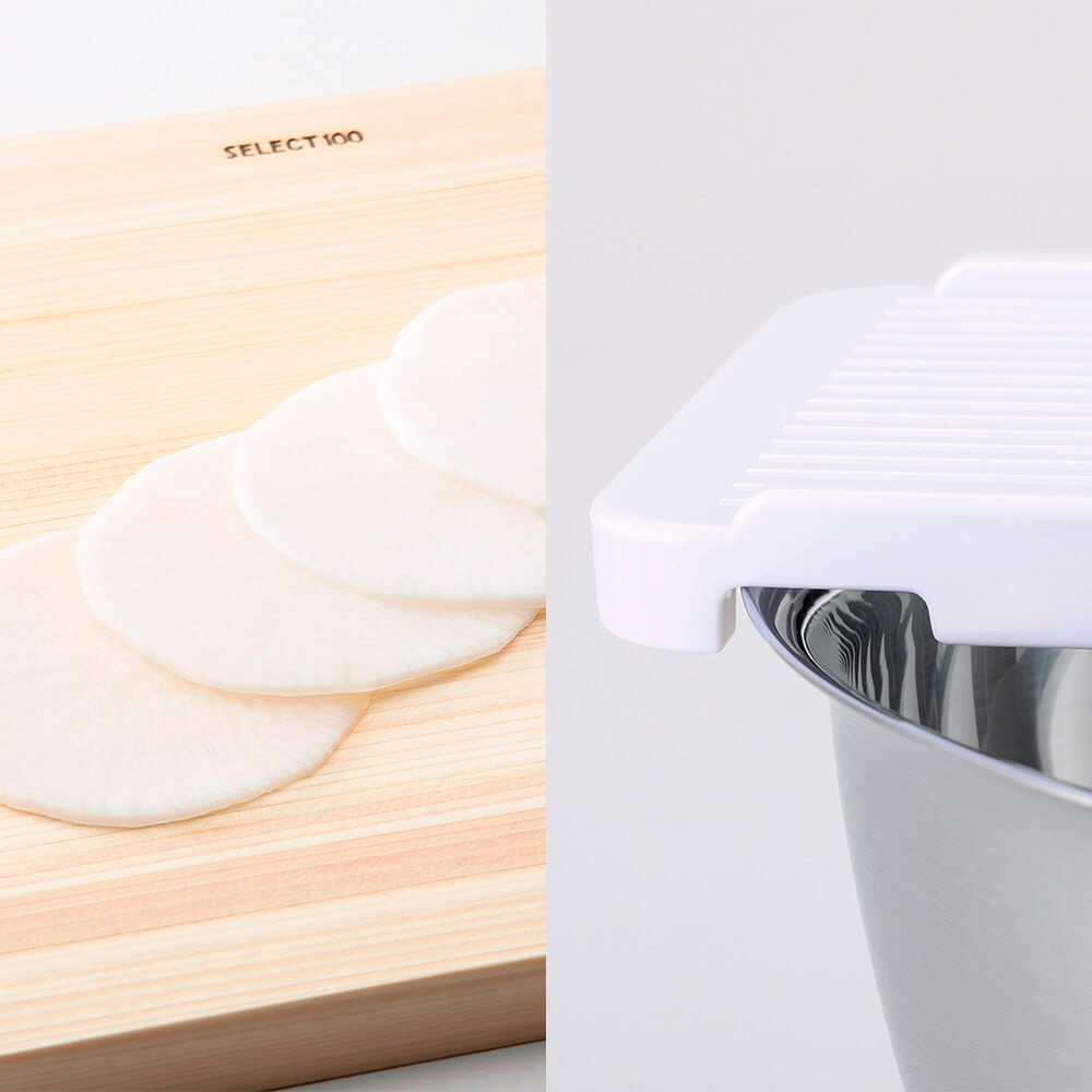 料理を通じて「幸せな時間作り」のお手伝いをする基本の調理道具SELECT100。「使いやすい道具はシンプルで美しく、手になじむ」をコンセプトにした、誰もが心地よく料理を愉しめる道具です。