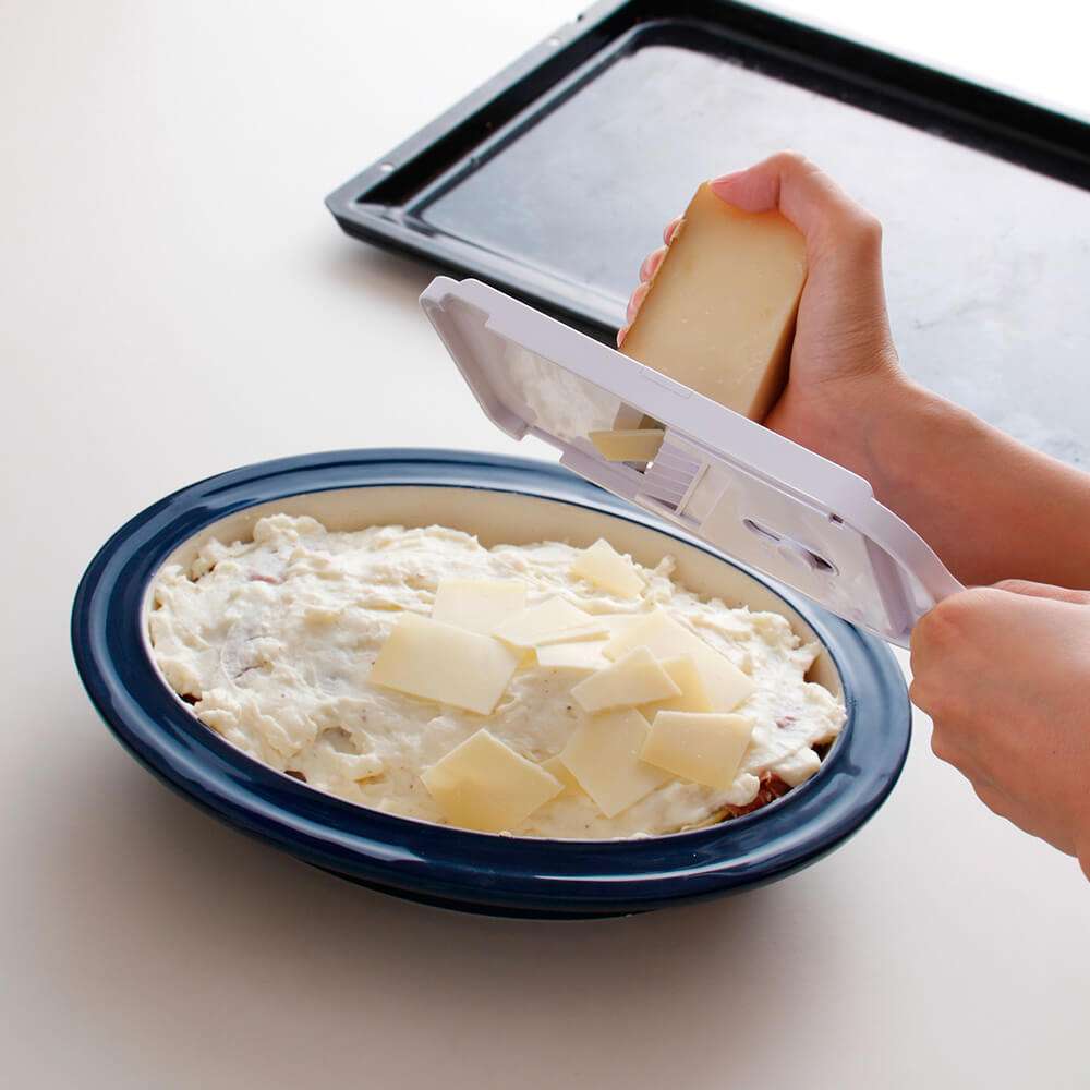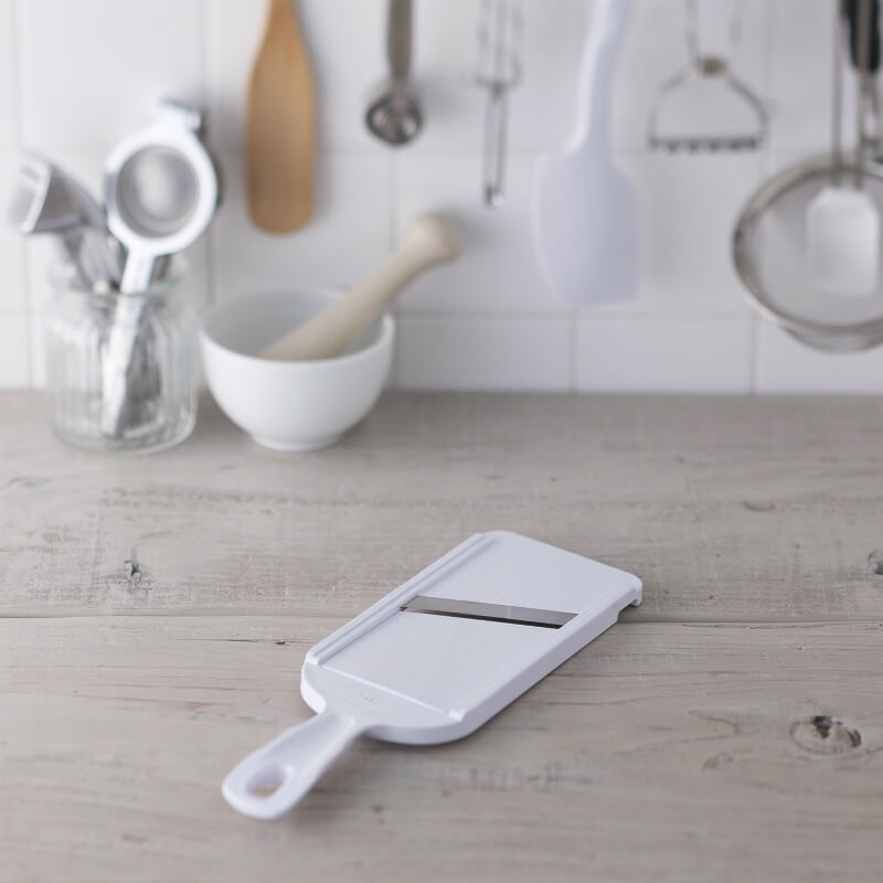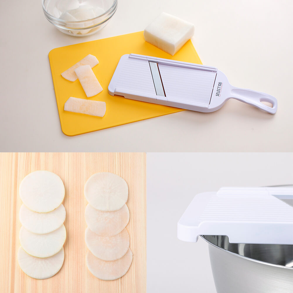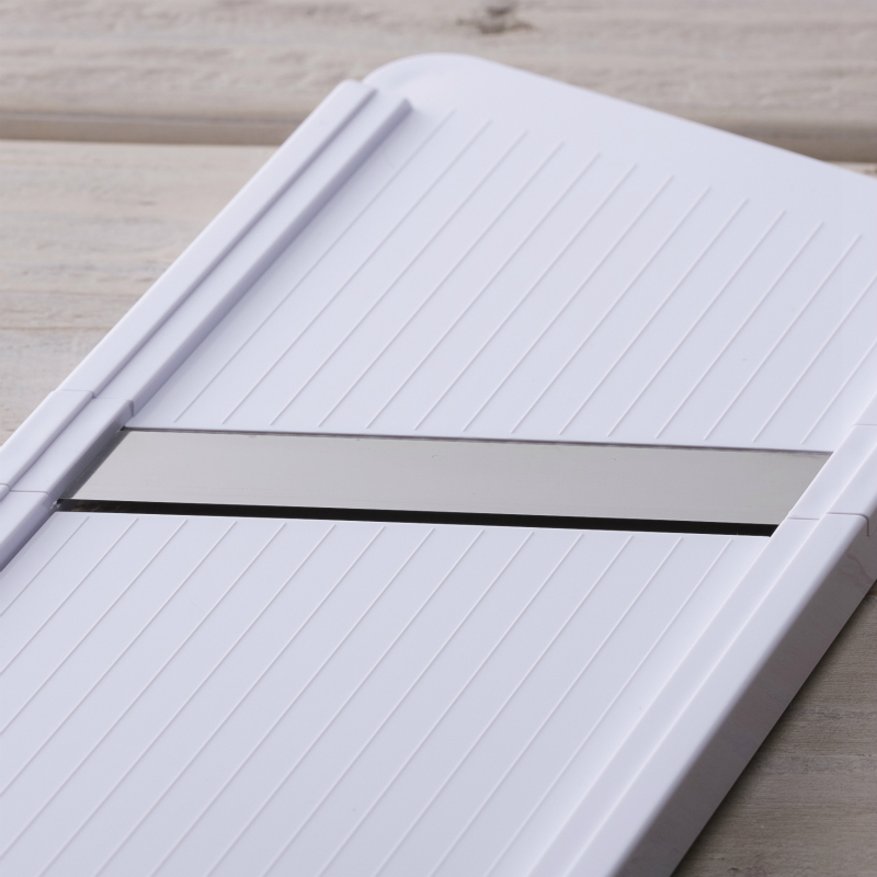・スライス部のプレートが裏面のスライドにより可動し、調理する食材の厚みを変えることができます。(厚さ1.0mm?2.5mm)