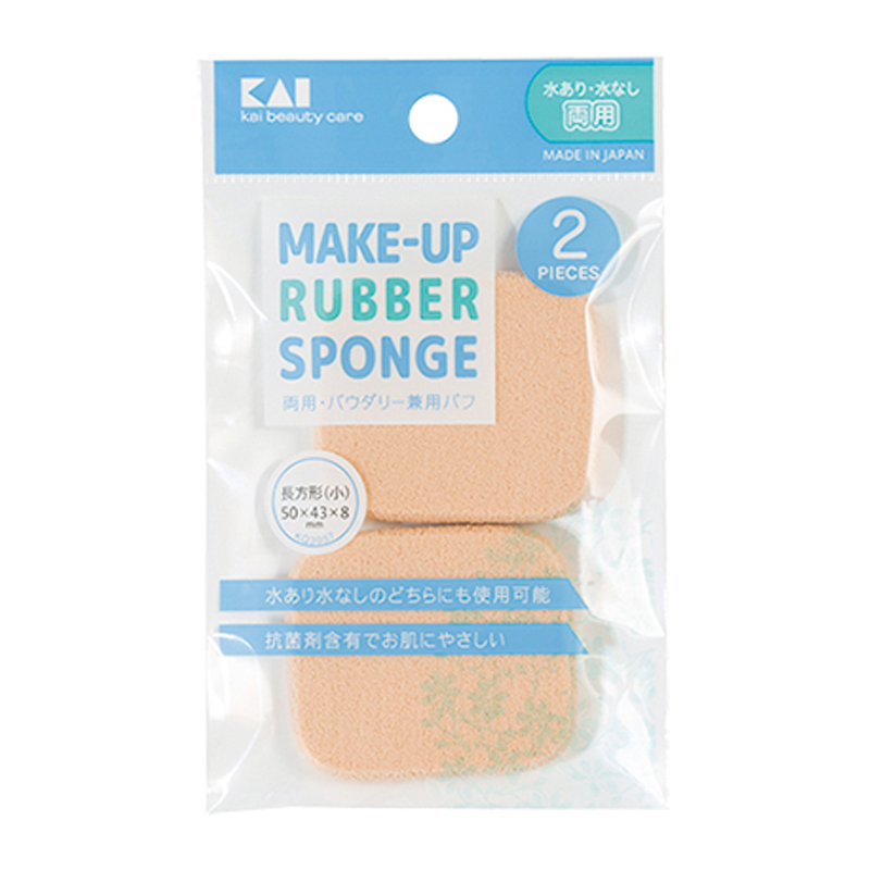水あり水なしのどちらにも対応可能。抗菌仕様でお肌にやさしいパウダリーファンデパフ。2P長方形 小 両用。