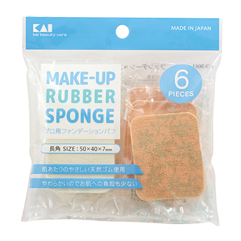 肌あたりのやさしい天然ゴム使用。柔らかいのでお肌への負担も少ないファンデーション用パフです。長角6P。