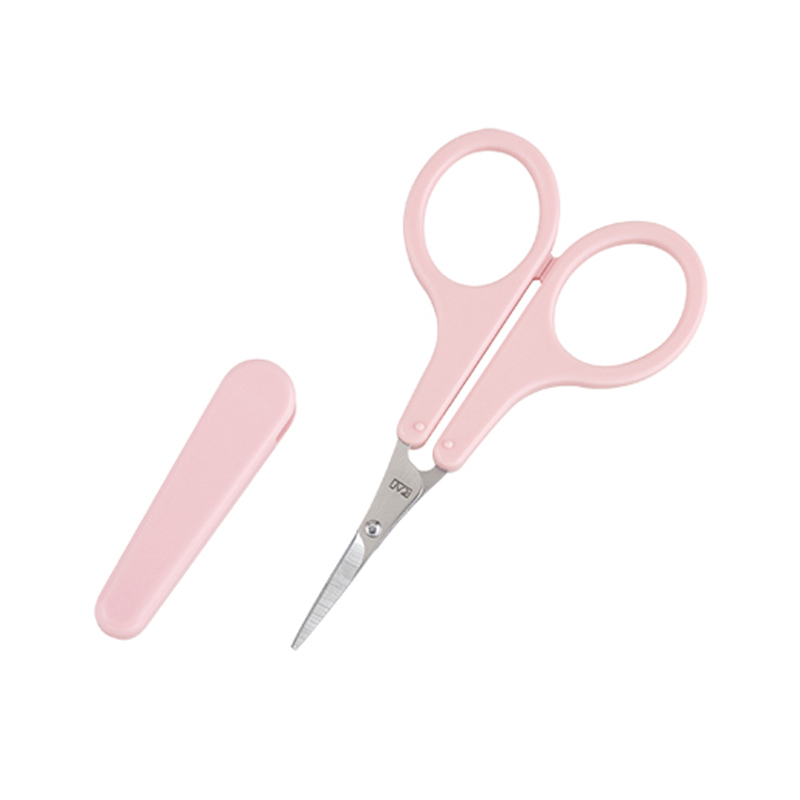 "短いムダ毛もお手入れしやすい刃先の厚みが薄いタイプの日本製カットハサミ。マユ毛やつけまつ毛のポイントカットに便利。女性向けパッケージ。n"