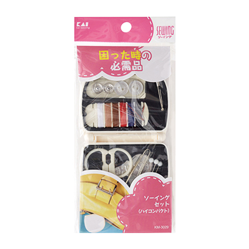 困ったときの必需品。セット内容は、ボタン、ホック、安全ピン、針、スレーダー、糸(6巻)、ハサミ、糸抜き、マチ針。