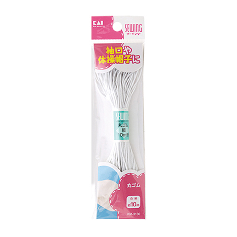 袖口や体操帽子に。伸縮性に優れたソフトな感触です。白 細 約10m。
