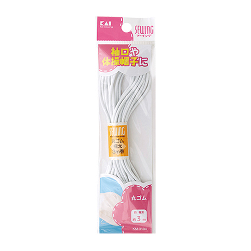 袖口や体操帽子に。伸縮性に優れたソフトな感触です。白 極太 約3m。