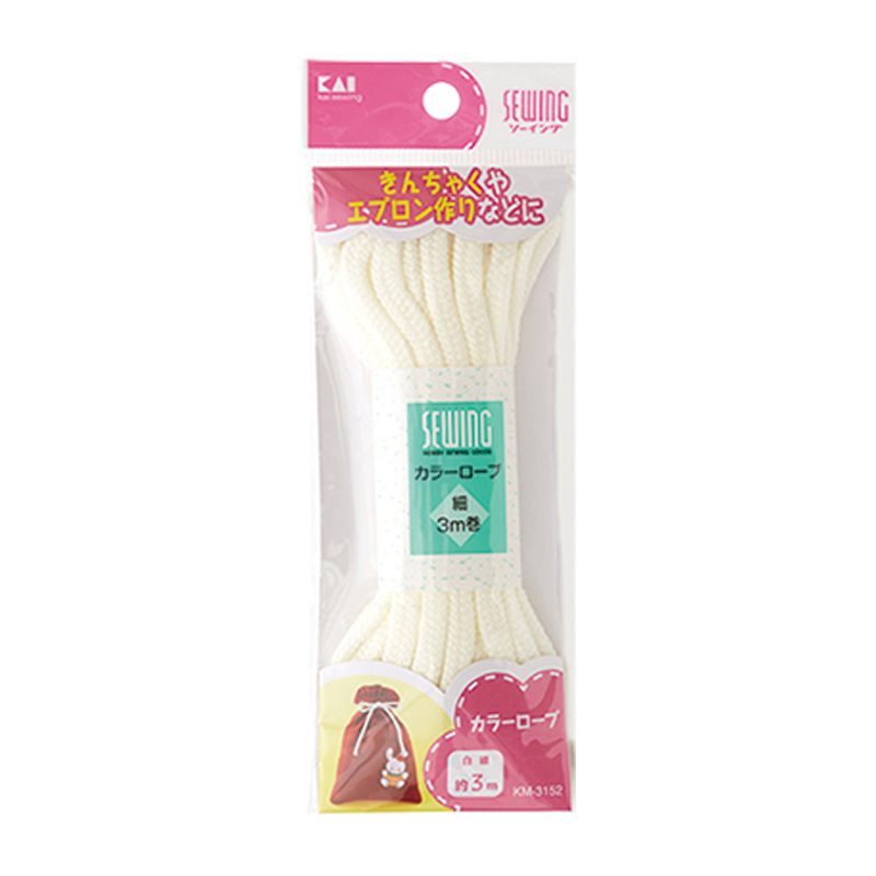 きんちゃくやエプロン作りなどに便利なカラーロープ(白/細)3m巻です。