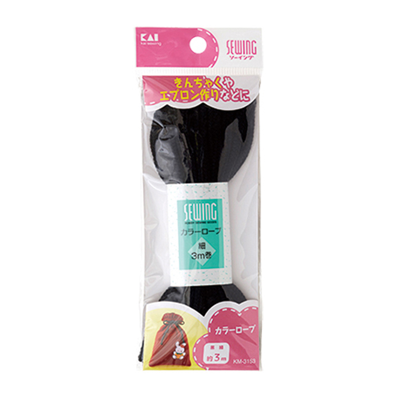 きんちゃくやエプロン作りなどに便利なカラーロープ(黒/細)3m巻です。