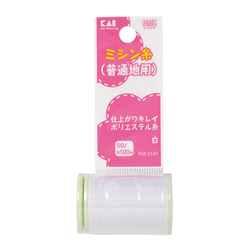 仕上がりがきれいなポリエステル糸。50/300m。白。