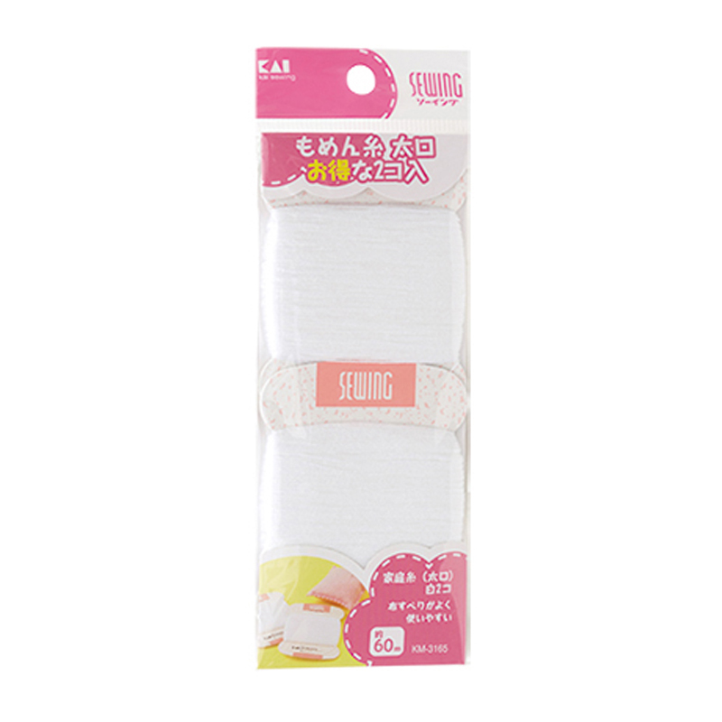 布すべりがよく使いやすい家庭糸。太口、白。2個。各60m。