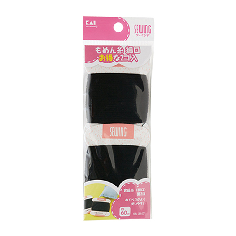 布すべりがよく使いやすい家庭糸。細口、黒。2個。各60m。