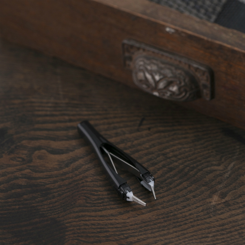 毛をつまんで押すだけで、簡単に毛が抜けます。先平タイプ、キャップ付きです。