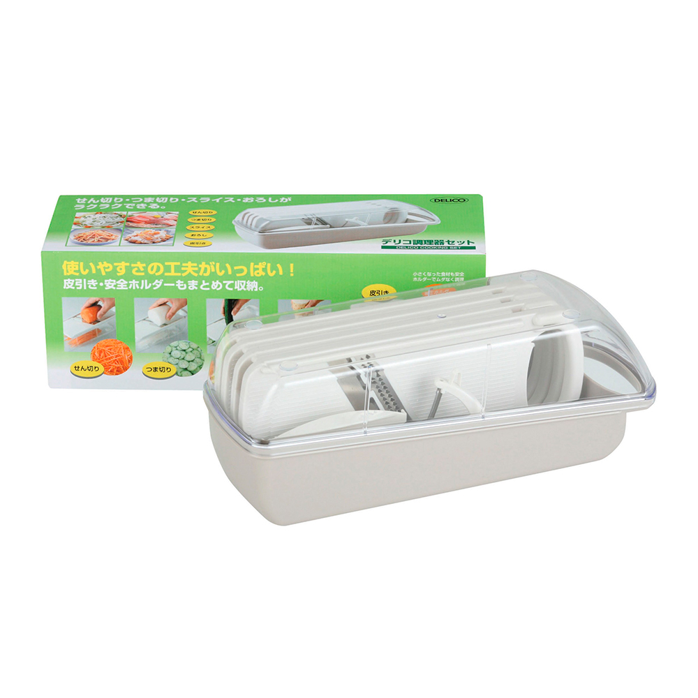 使いやすさの工夫がいっぱい!皮引き・安全ホルダーもまとめて収納できる調理器セットです。