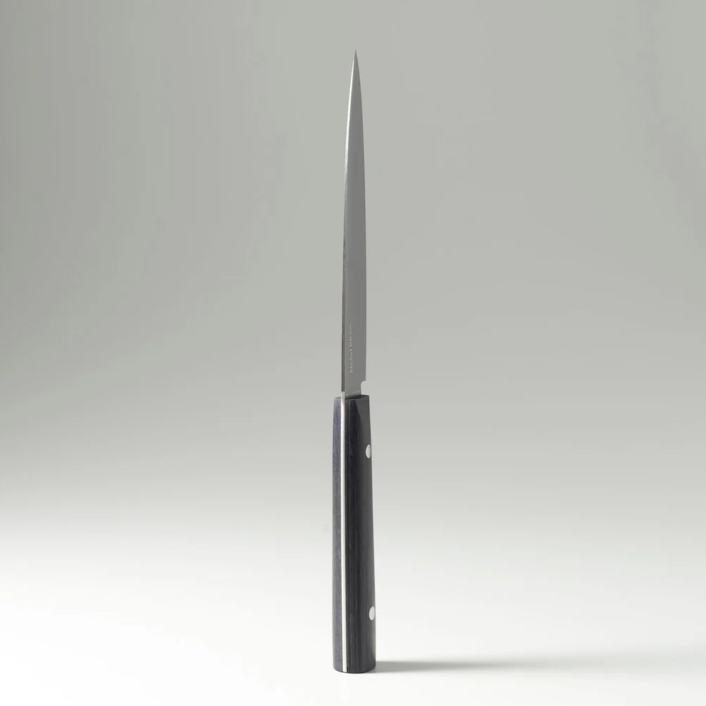 - フランス語で、“毎日の”、“日常の”を意味する「コティディアン」と名付けられている通り、カジュアルな毎日の料理に大活躍する3本です。10本の包丁シリーズと同様に、繊細なフォルム、チタンコーティングされた刃体、手作業で作られたハンドルなどが特徴です。初めて本ブランドの製品を使う人のためのエントリー・モデルとしても、ブランドの魅力を知り尽くしている人のためのカジュアルな仲間としても、大活躍することでしょう。野菜の千切りや薄切りなど、好みの作業が自在にできます。※右利き・左利き兼用の包丁になります。左利きの方でもご使用いただけます。