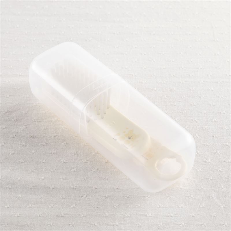 赤ちゃんの細くて柔らかい髪に。ヘアブラシとクシに収納や携帯に便利なケースをつけました。ブラシは優しい肌あたりのを採用。クシは頭皮を痛めないよう先丸先端形状です。