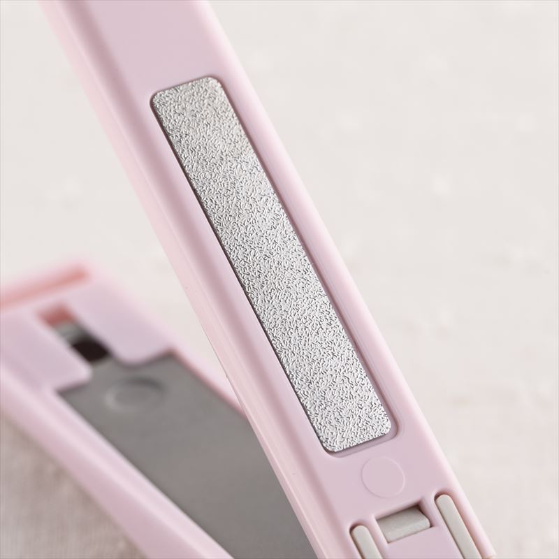 小さなツメも切りやすい直線刃。ツメが飛び散りにくいストッパーケース付き。