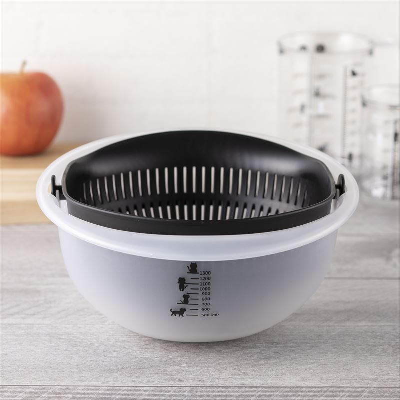 かわいいねこの目盛り付。※ボウルとザルは取り外し可能です