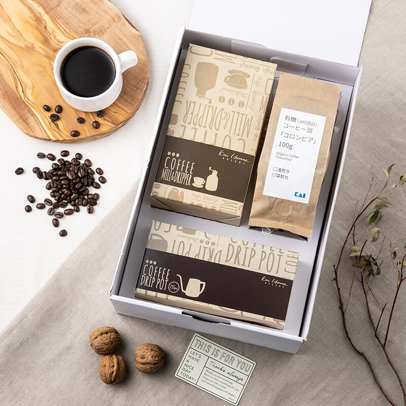 日頃の感謝を伝えるギフト。珈琲がセットになっているので、届いて直ぐにお召し上がりいただけます。挽きたてのコーヒーの香りをお楽しみください。