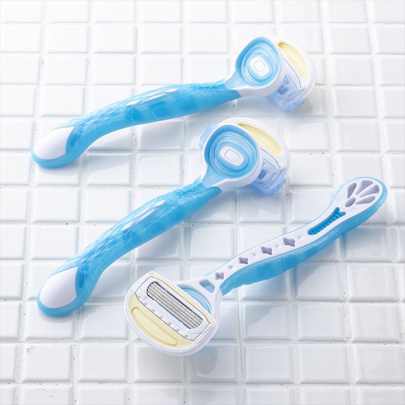 日本女性の手から生まれたどのような持ち方でも安心して使えるソフトグリップと、刃が最適な角度で肌に接するインテリジェントフィッティングシステムを採用し、ヘッドが自由自在に動き、やさしい肌あたりと剃り味を両立しました。保水力に優れ従来品より潤滑機能が持続する新スムーサーを採用した、肌にやさしい5枚刃使い捨てカミソリ。