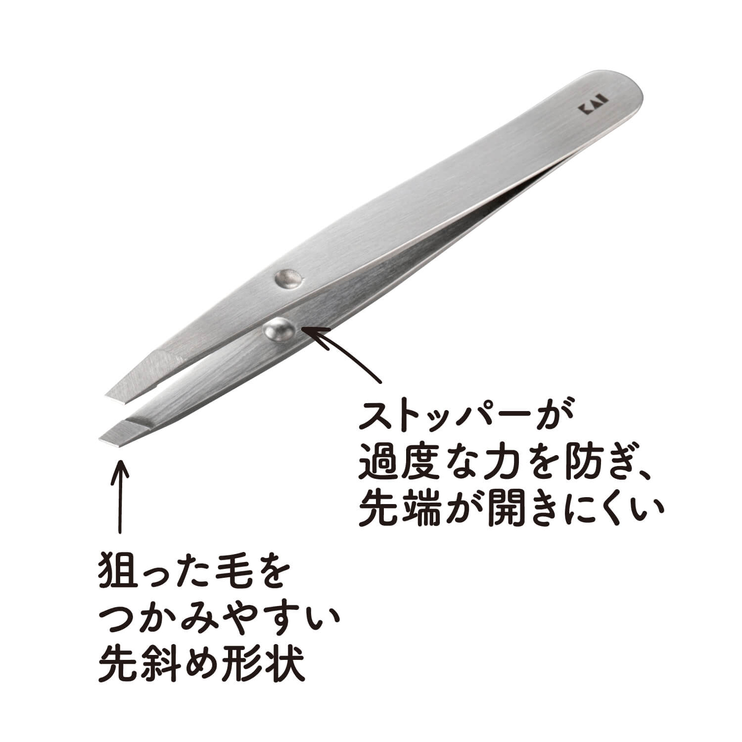 本体内側の凸構造が過度な力を防ぎ、先端の開きを防止。先端がしっかり閉じるので、狙った毛を逃さずがっちり掴みます。