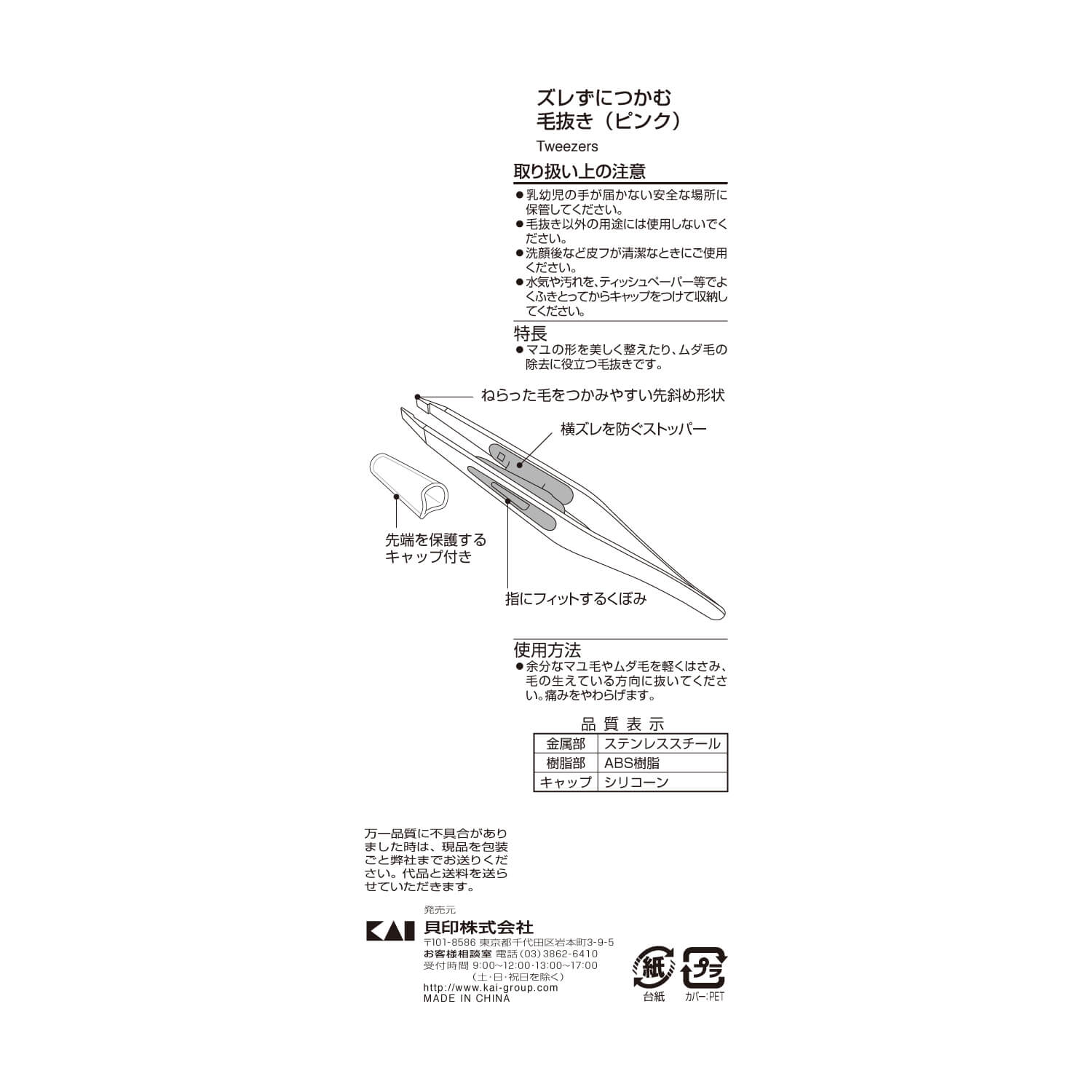 横ズレを防止する独自設計の機構を毛抜き内部へ配置し、スリムなフォルムにまとめました。