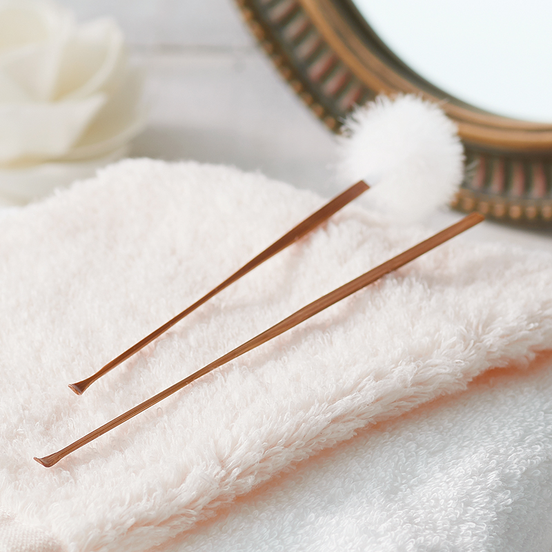 ノーマルタイプと凡天付きタイプの形状違いの耳かきのセット。お好みの形状を家族と分けて使用できます。