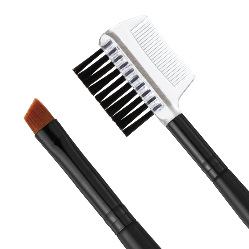 眉を「整える」「描く」「ぼかす」ができるアイブローブラシとクシ付き眉ブラシのセットです。