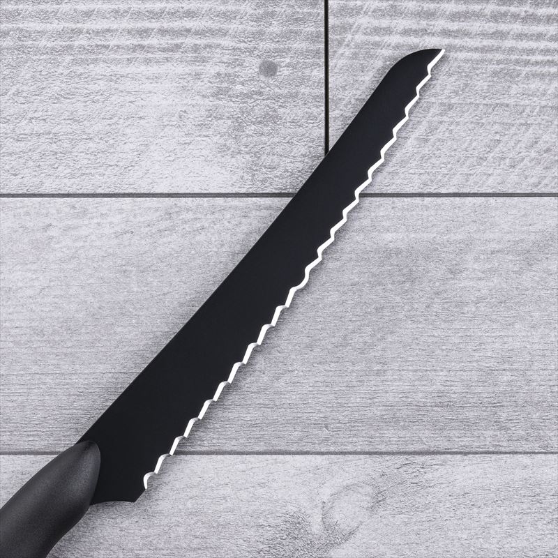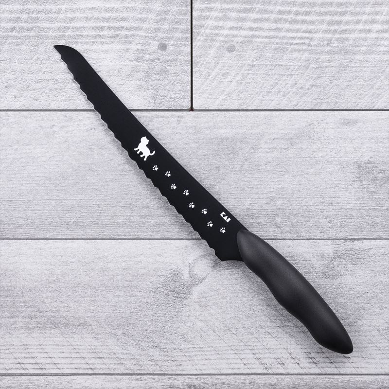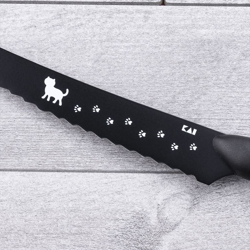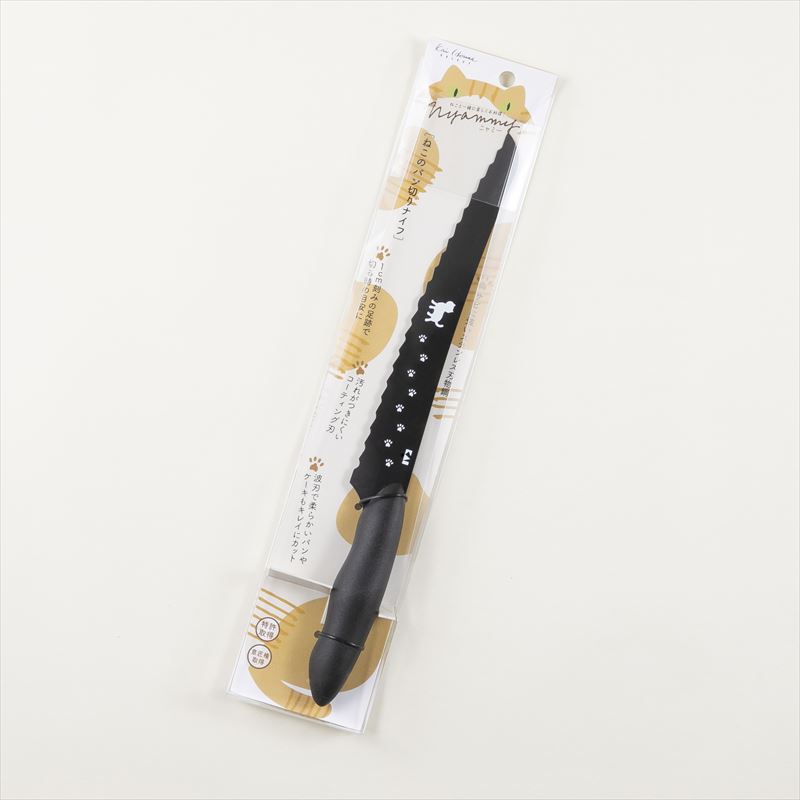 - “ねこと一緒に楽しくお料理!”当社売れ筋商品の性能を活かしつつ、キッチンの雰囲気を邪魔しない形でネコモチーフを取り入れました。ネコ好きの方もそうでない方も『欲しい!使いたい!』と思える、ほどよいネコ感を大切にしています。柔かいパンやケーキもきれいにカットできる波刃のパン切りナイフ。ねこ足のイラストが1cm刻みにデザインされているので、切る時の目安にもなり便利です。