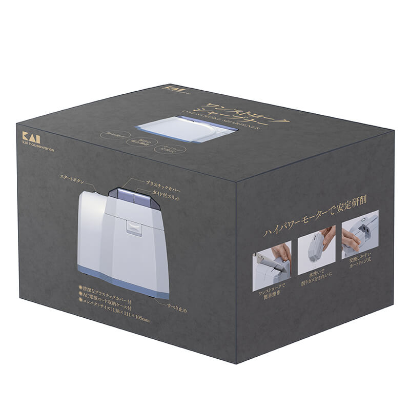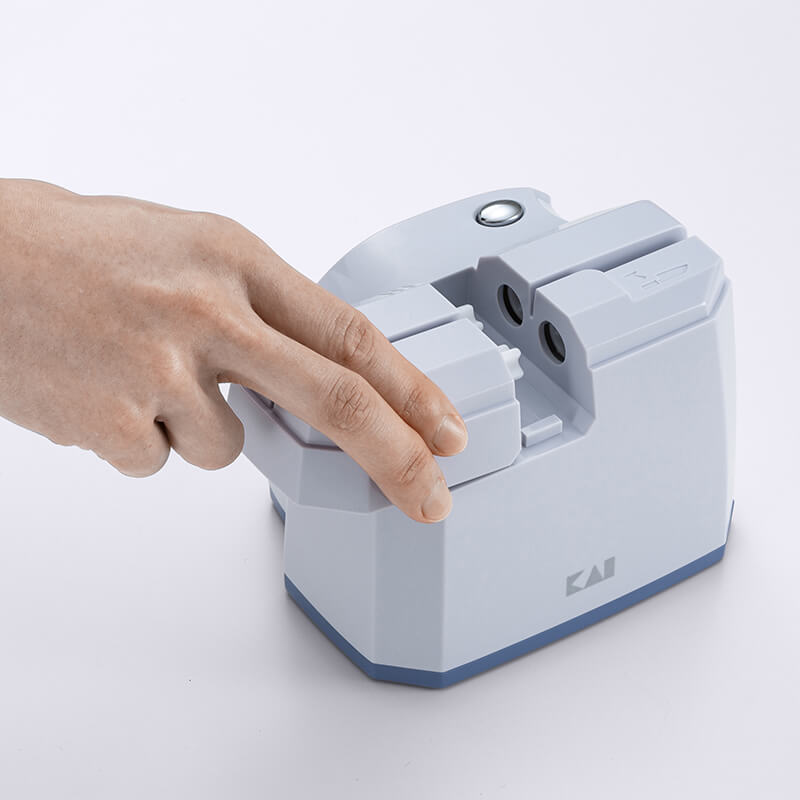 - 一回溝に通すだけで切れ味がよみがえります。砥石カートリッジは簡単に着脱でき、水洗い可能で清潔に保てます。