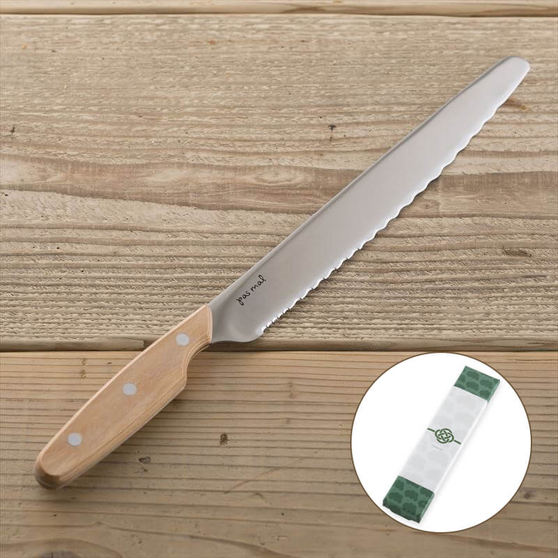 pas mal (パマル)とは「いいね!」「いいじゃん!」という意味を持つフランス語です。この名の通り、どんな種類のパンでも気持ち良く、美しく切れる使い心地を追及したパン切り包丁です。