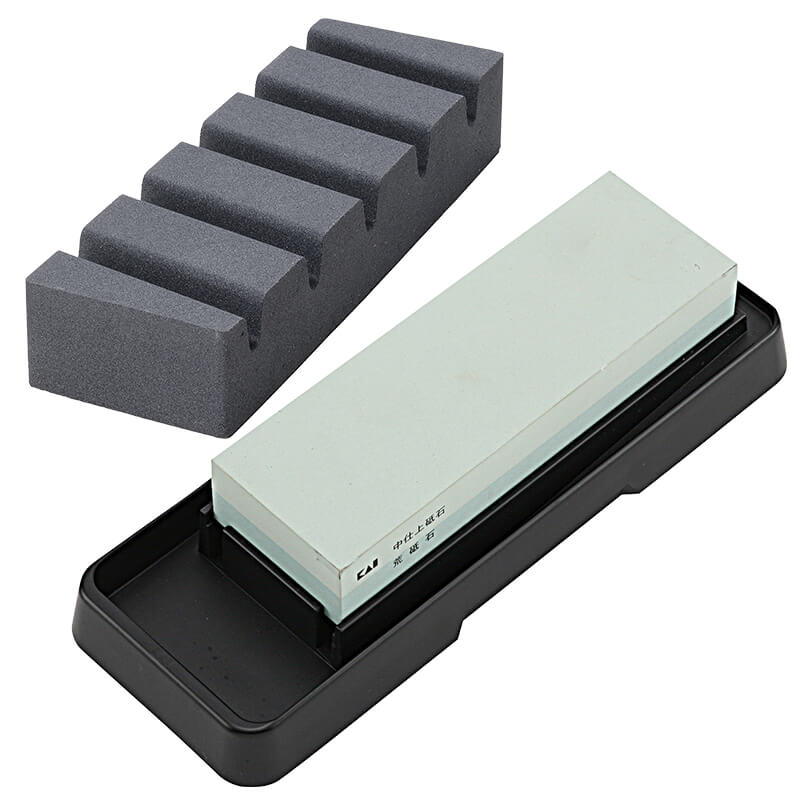 包丁を本格的に研ぐには「荒砥石」→「中仕上砥石」→「仕上砥石」などの順に、荒い目の砥石から初めて、次第に目の細かい砥石で仕上げていきます。この砥石は、最初の研ぎに使用する荒砥石と、仕上げにご使用できる中仕上砥石が裏表になっています。