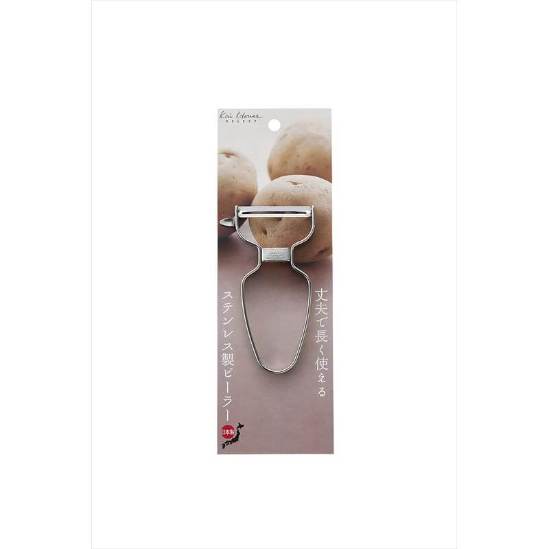 丈夫で衛生的なステンレス製のピーラーです。皮むき時に食材が見えやすく、持ちやすいハンドル形状で、じゃがいもの芽取り付です。