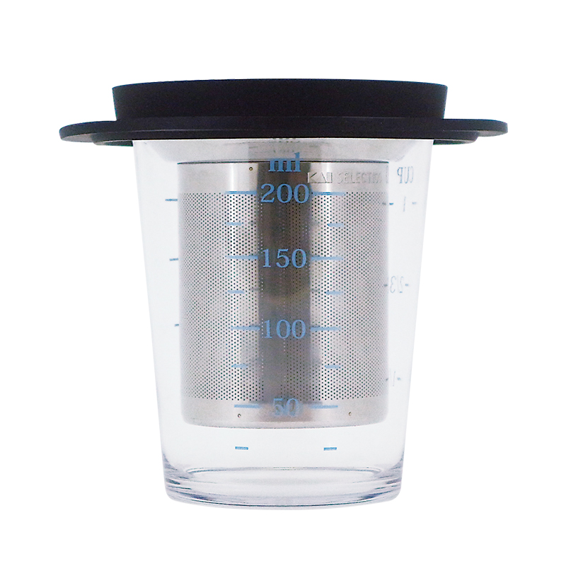 1?2人前の出汁とりに便利な2点セット。耐久性の高いステンレス板の網目のこし器と、全調味料が見やすい目盛りのフタ付き計量カップは、さまざまな用途にご使用いただけます。