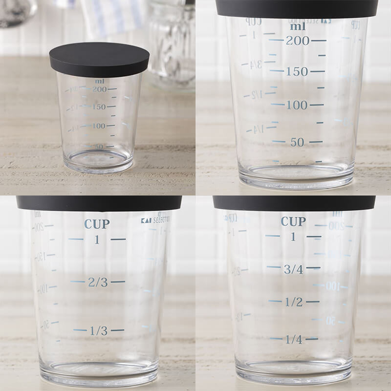 - 【計量カップ】 94×83×83mm、重量:87g、満水容量:260ml