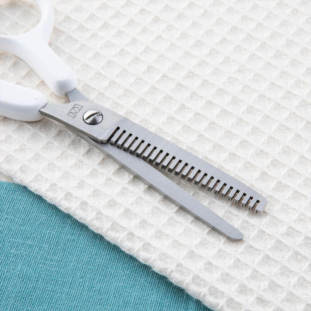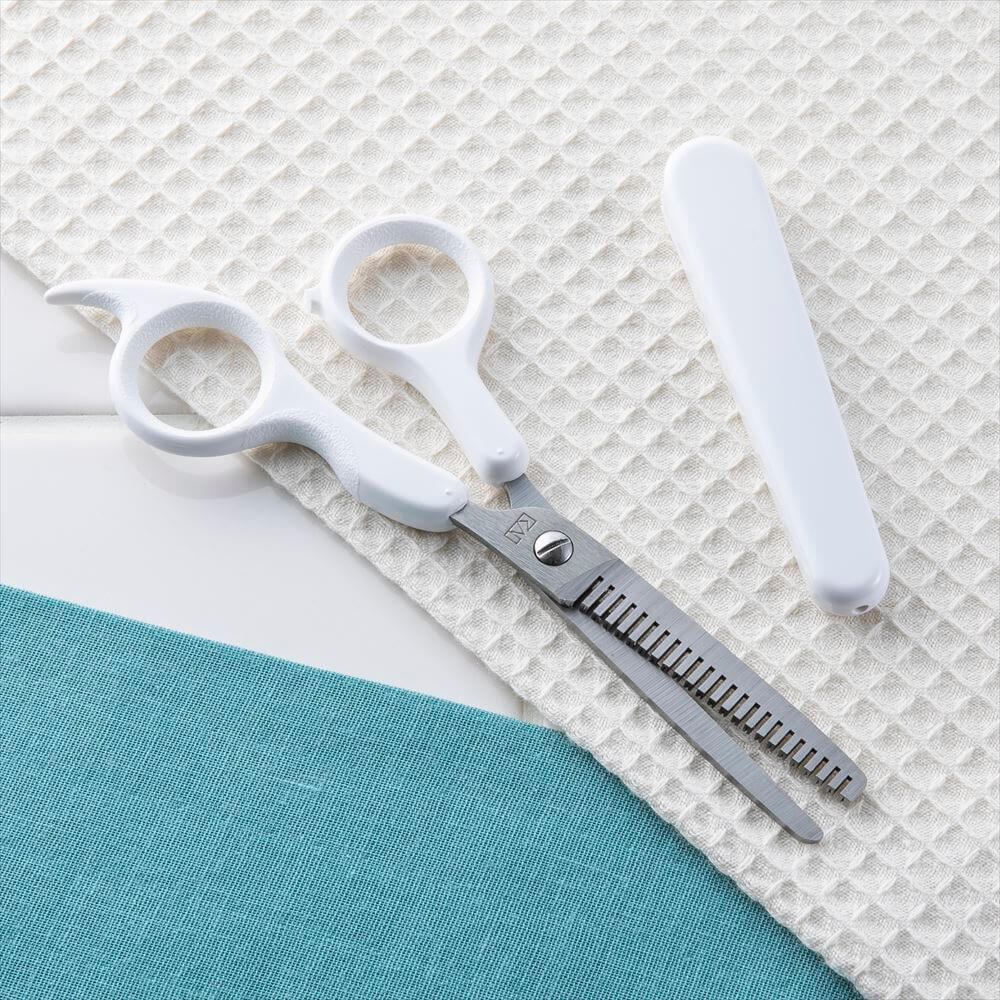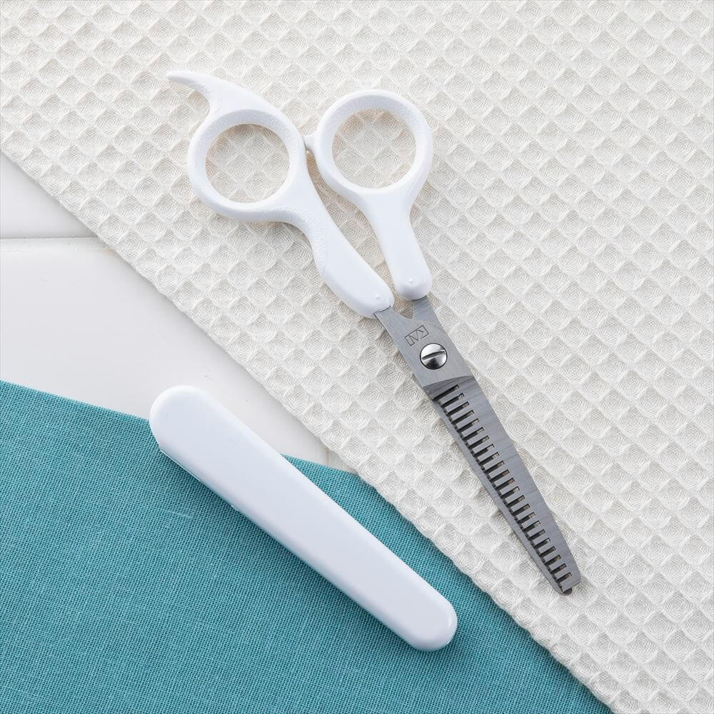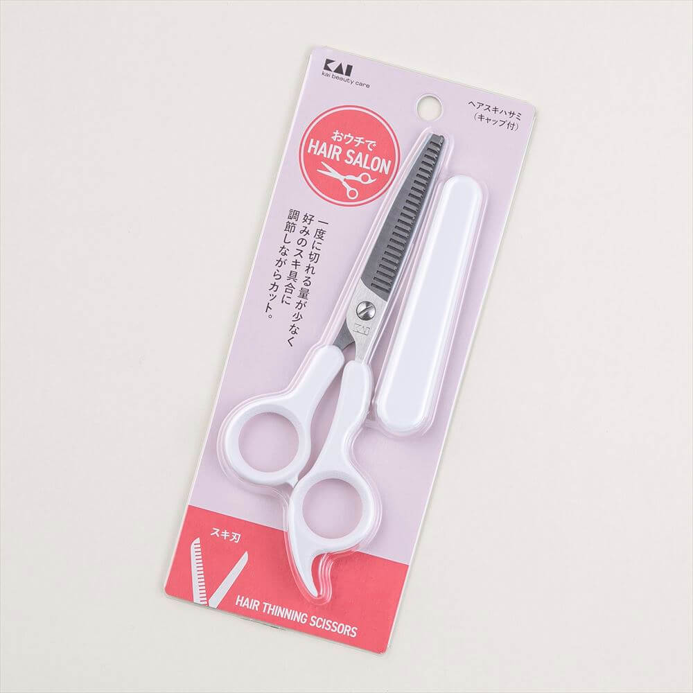 一度に切れる量が少なく、好みのスキ具合に調整しながらカットできる、ヘアスキハサミ(キャップ付)です。