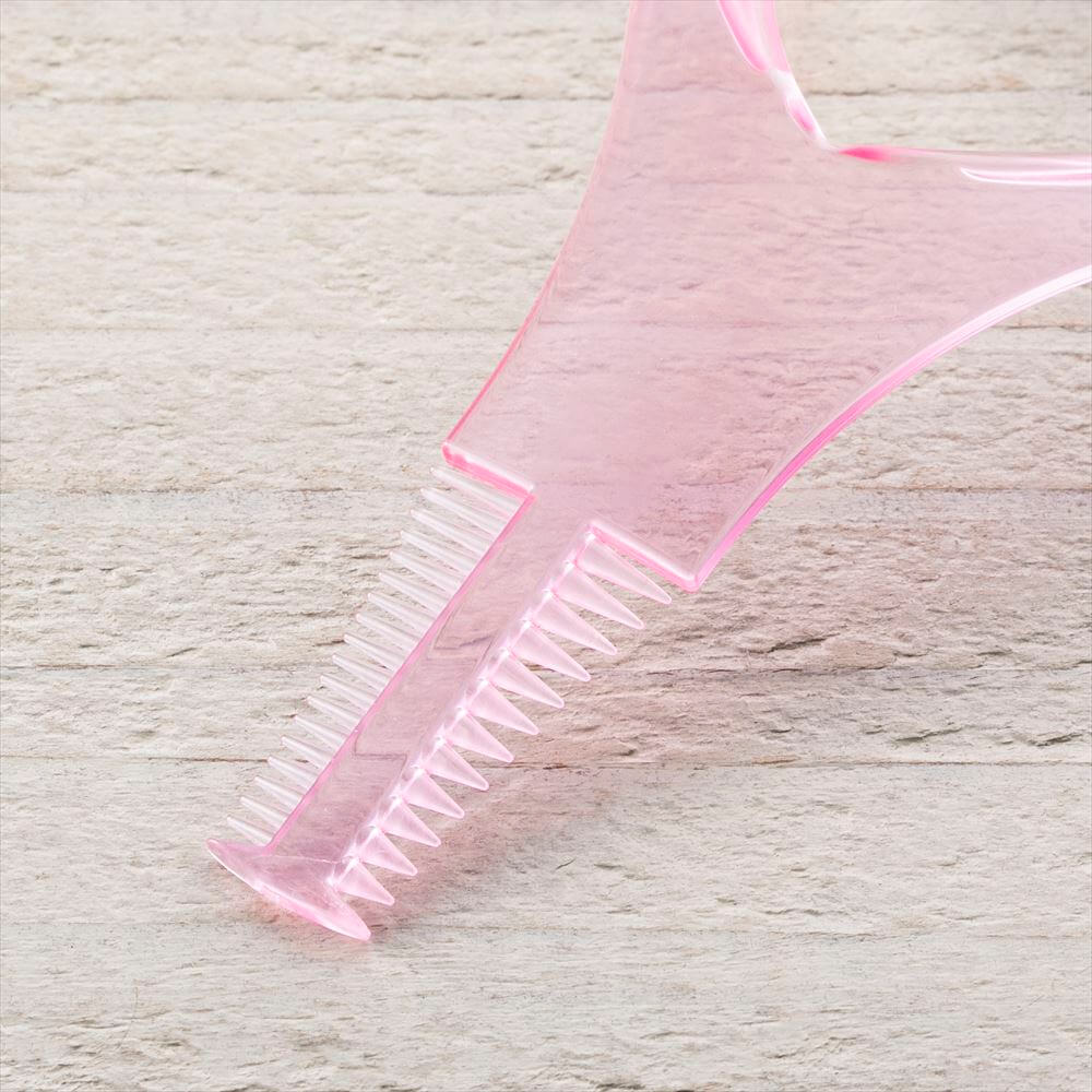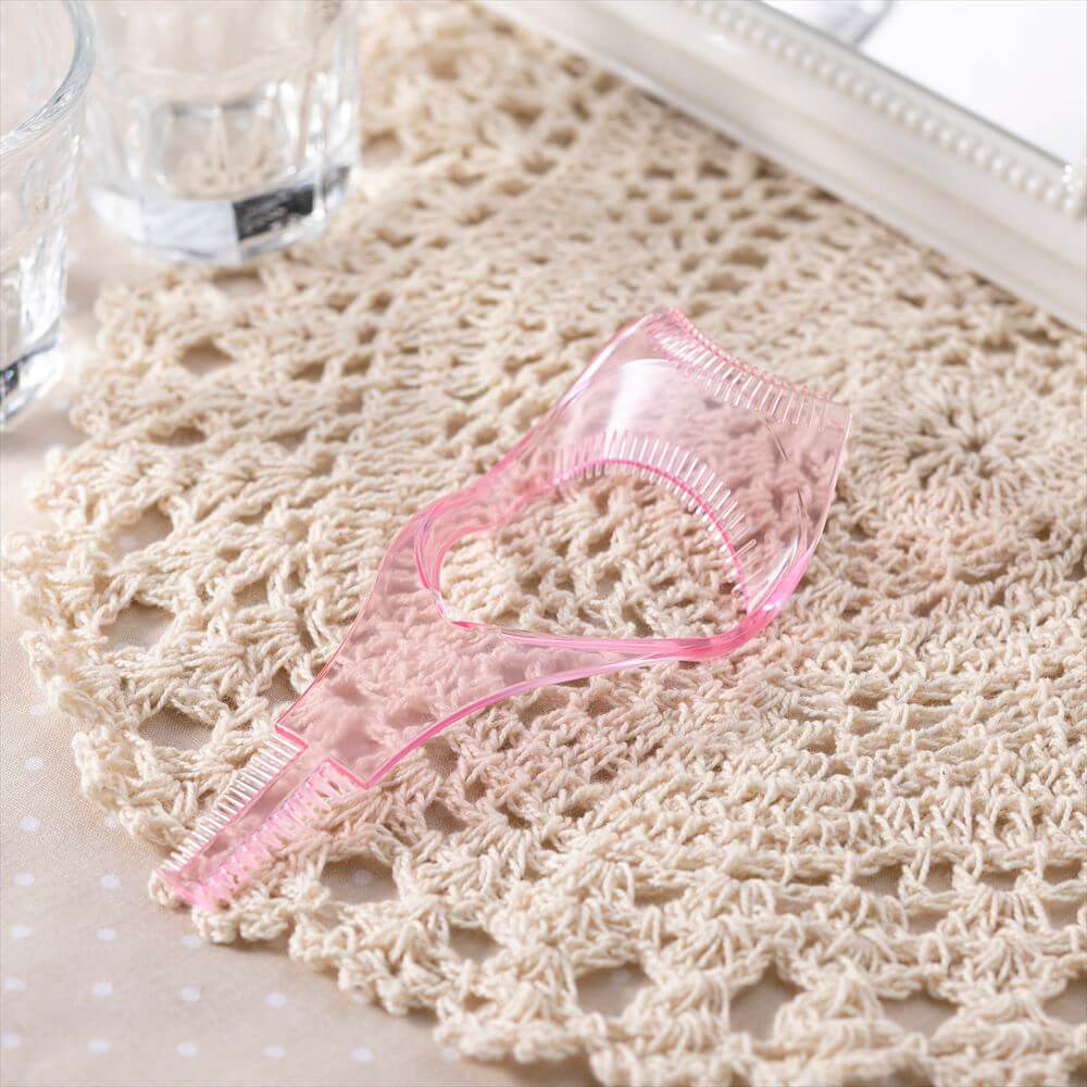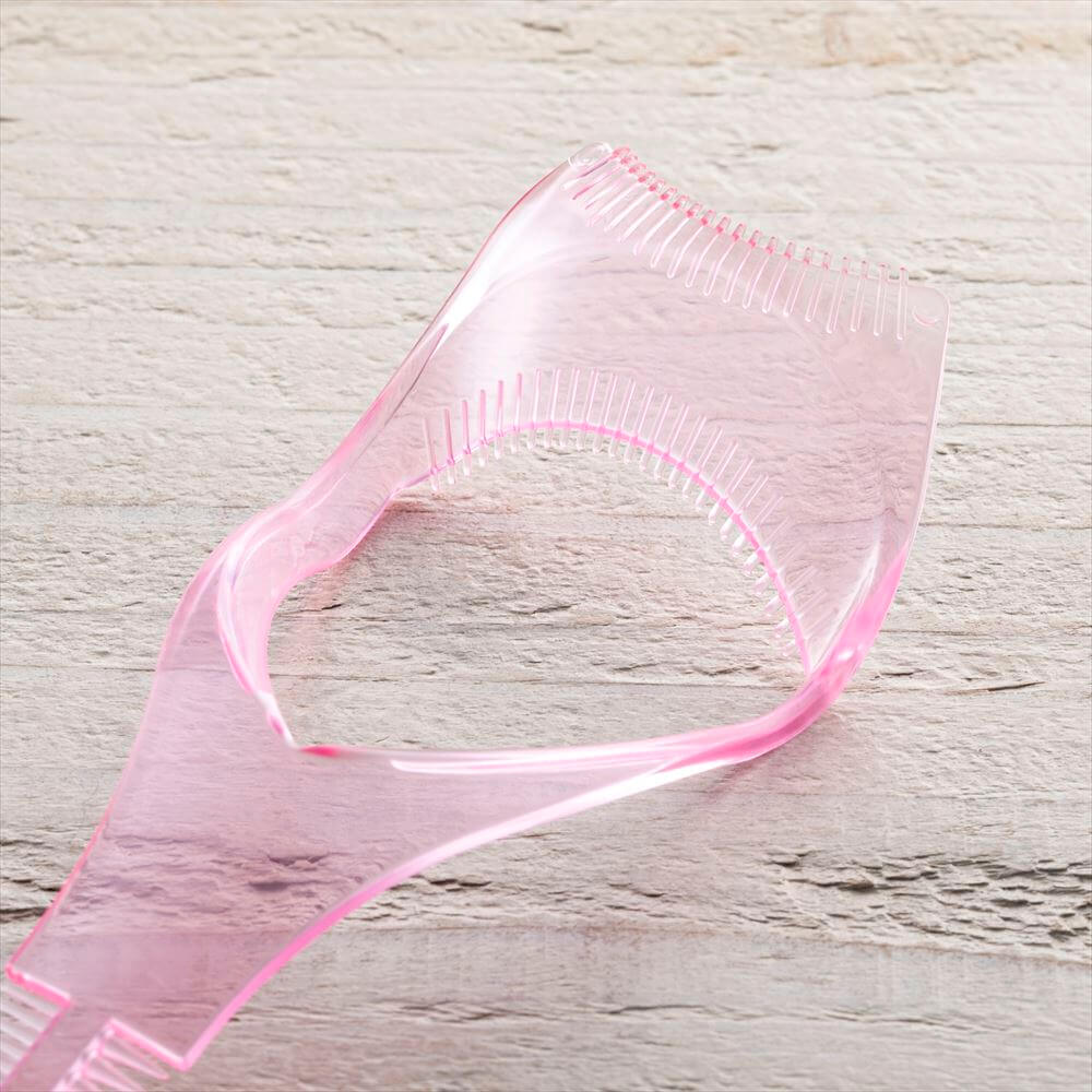 根元からまつ毛がきれいに広がるクシと、ダマにならず扇状に仕上がるギザギザ形状付のマスカラガードです。