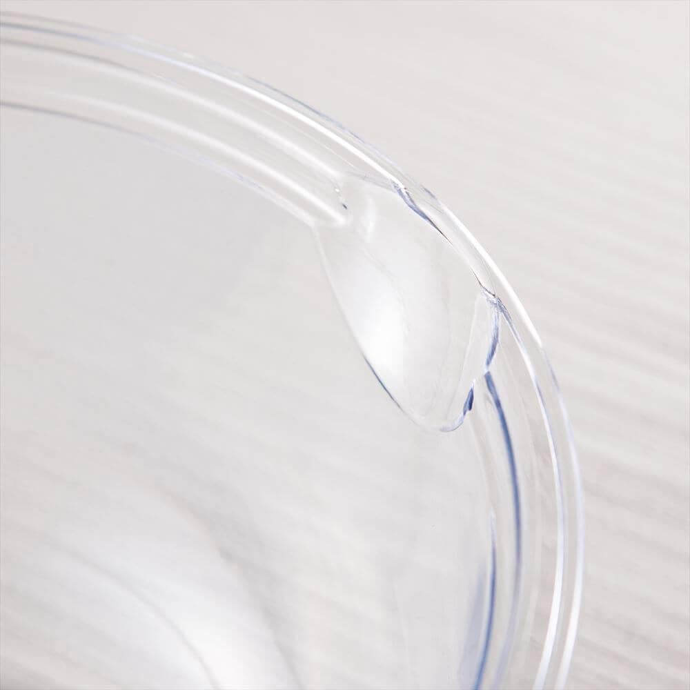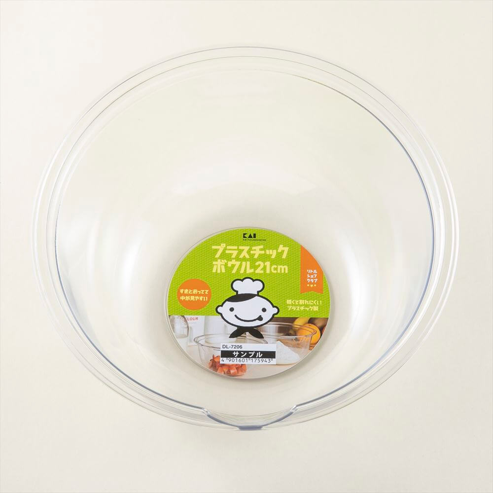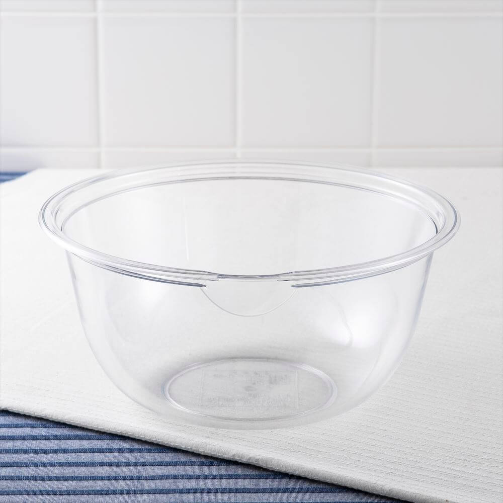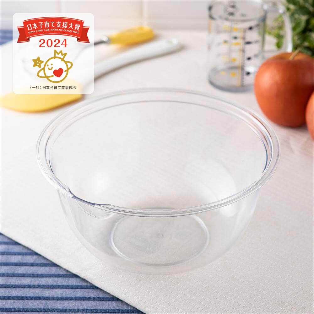 中の材料がよく見える透明のボウルで、軽く割れにくいプラスチック製なので子供でも安心。