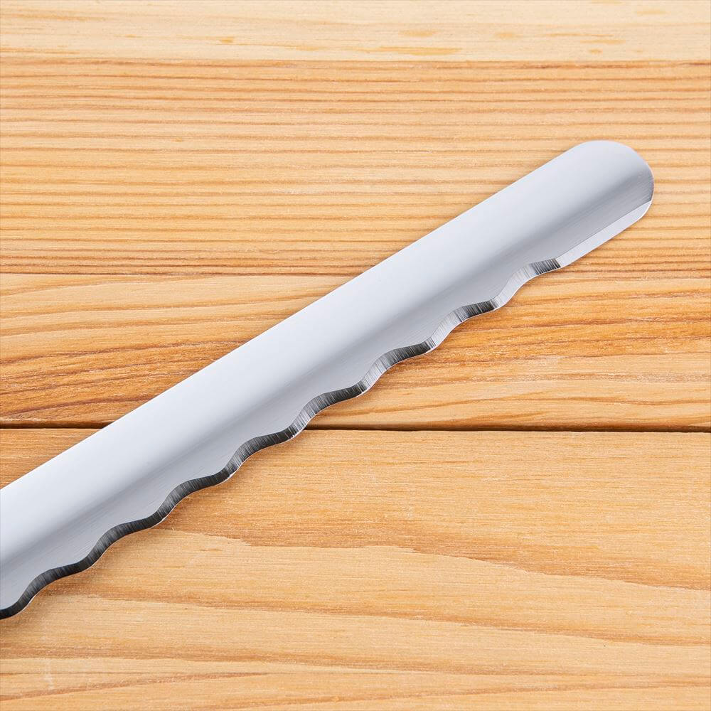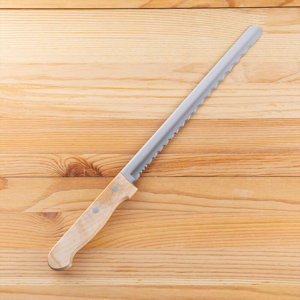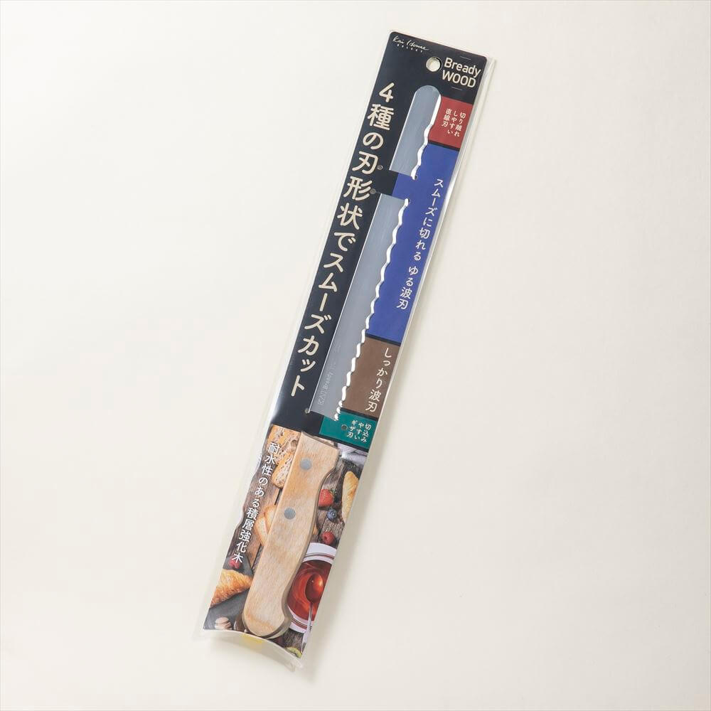 ナチュラルな木柄ハンドルのパン切りナイフです。4種の刃形状でスムーズな切れ味を実現。ハンドルは耐水性のある積層強化木を採用。