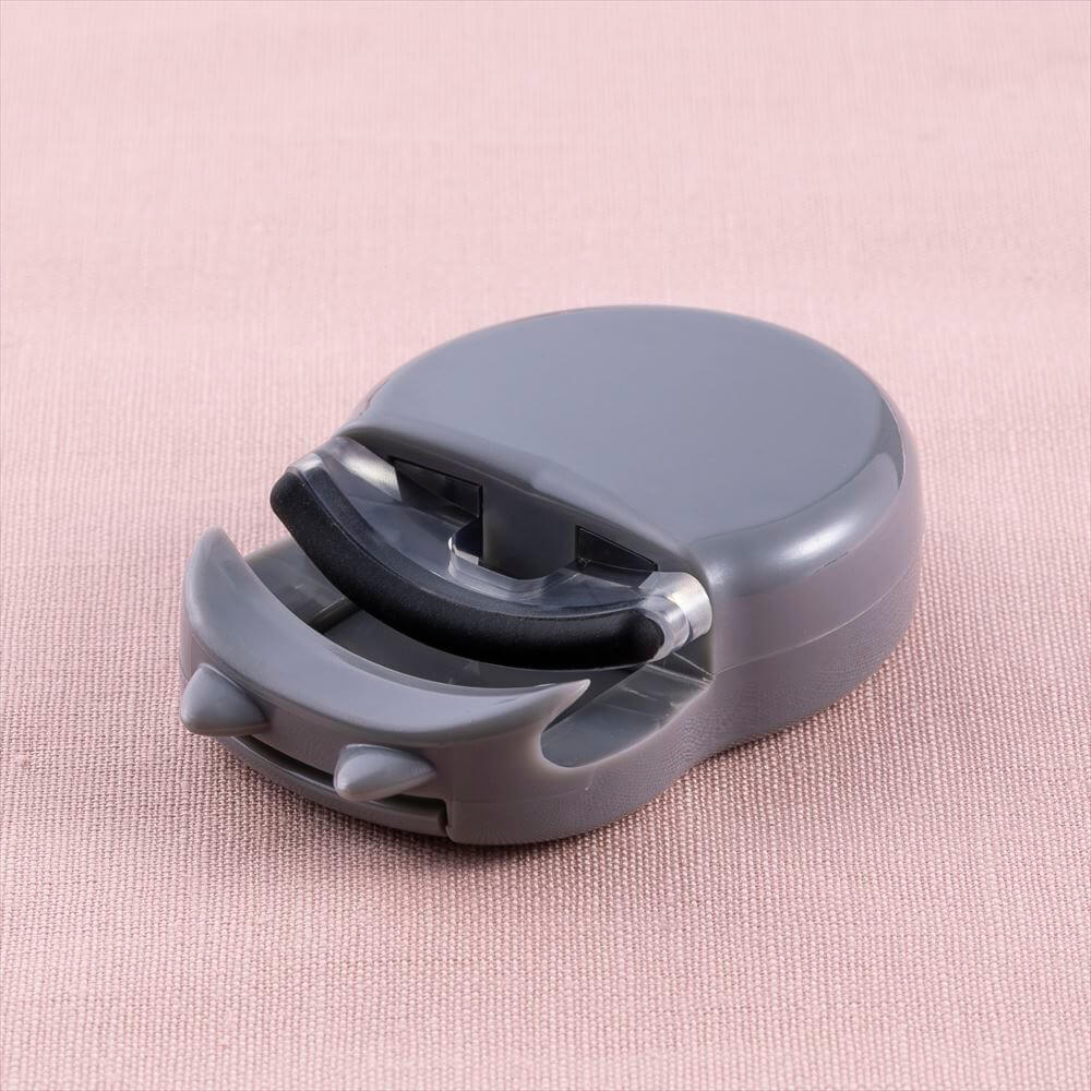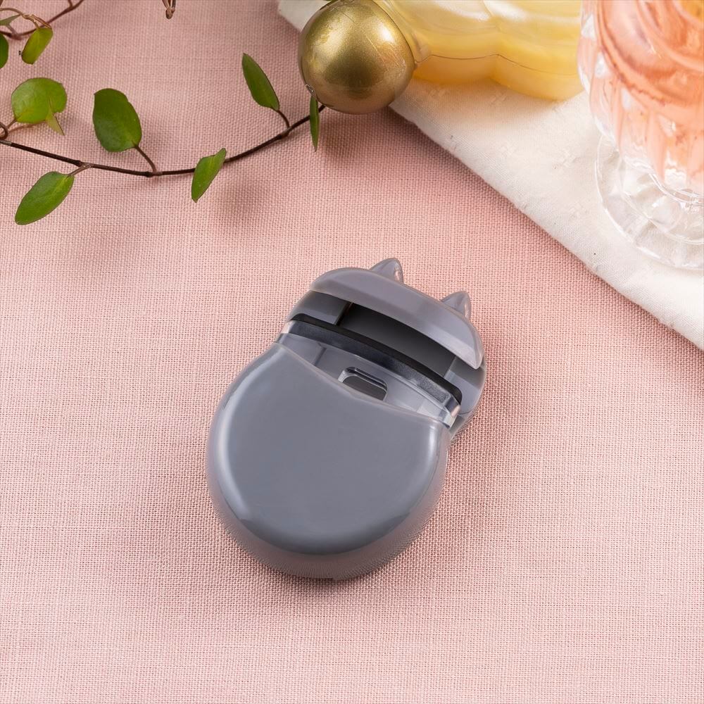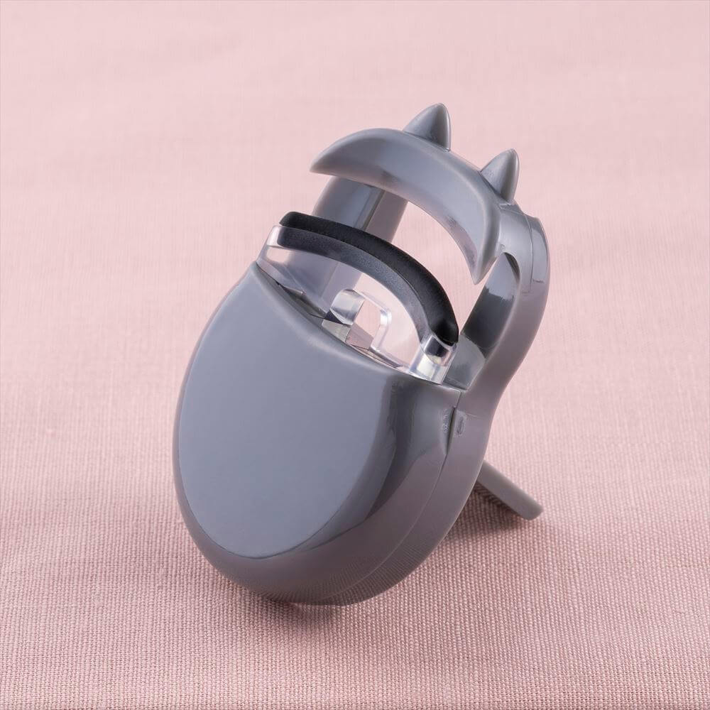 コロンとした丸みのある本体に、ねこ耳がさりげなくあしらわれたアイラッシュカーラー。ねこ耳の突起とプレートの2か所がまぶたを押し上げる構造で、まつ毛の生え際からしっかりキャッチします。