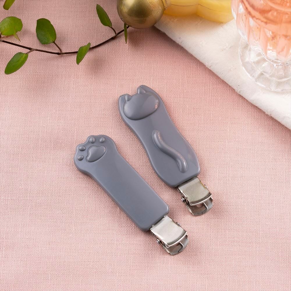 ねこが髪の毛をキャッチしてくれるような、かわいらしいデザインの前髪クリップ。