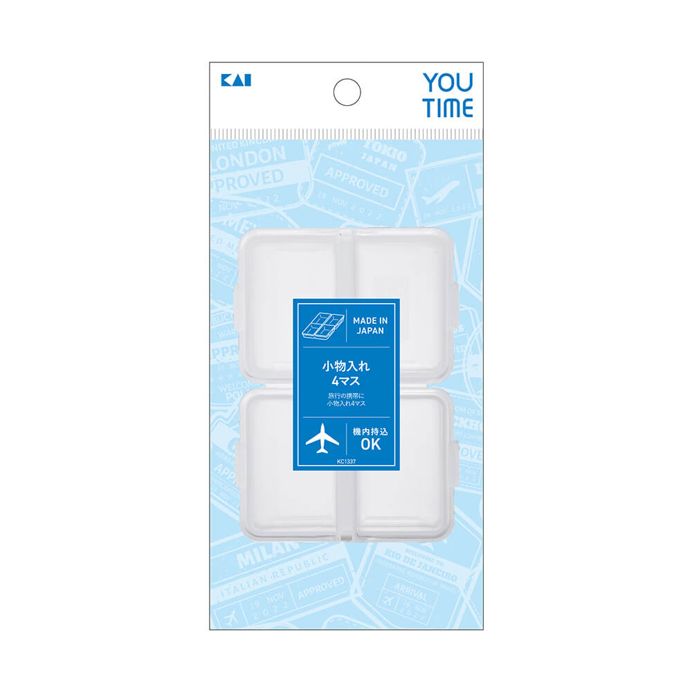 旅行の携帯に便利な、小物入れ4マスです。機内持込可能。